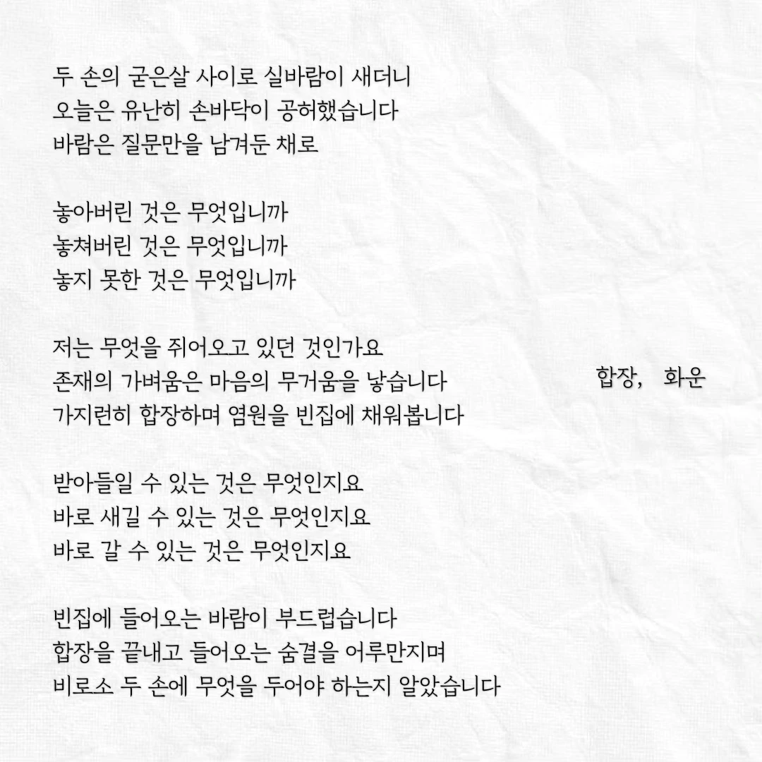 합장을 끝내고 들어오는 숨결을 어루만지며