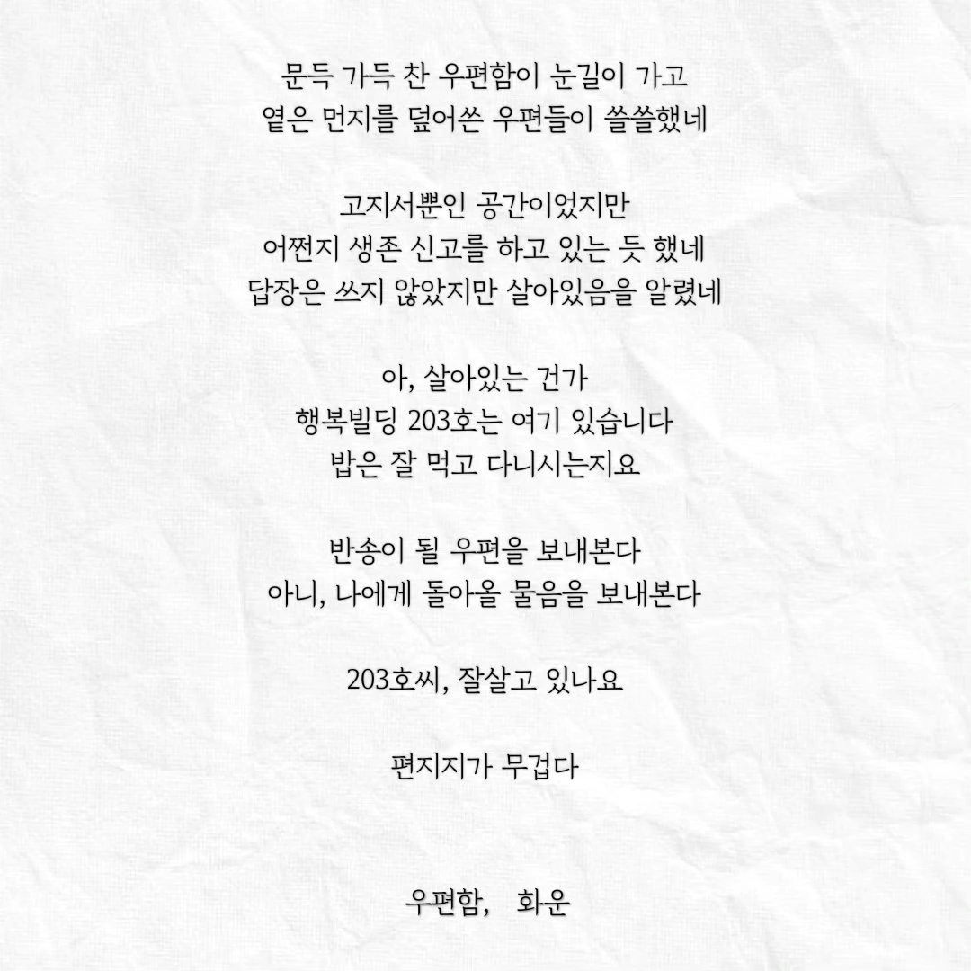 답장은 쓰지 않았지만 살아있음을 알렸네
