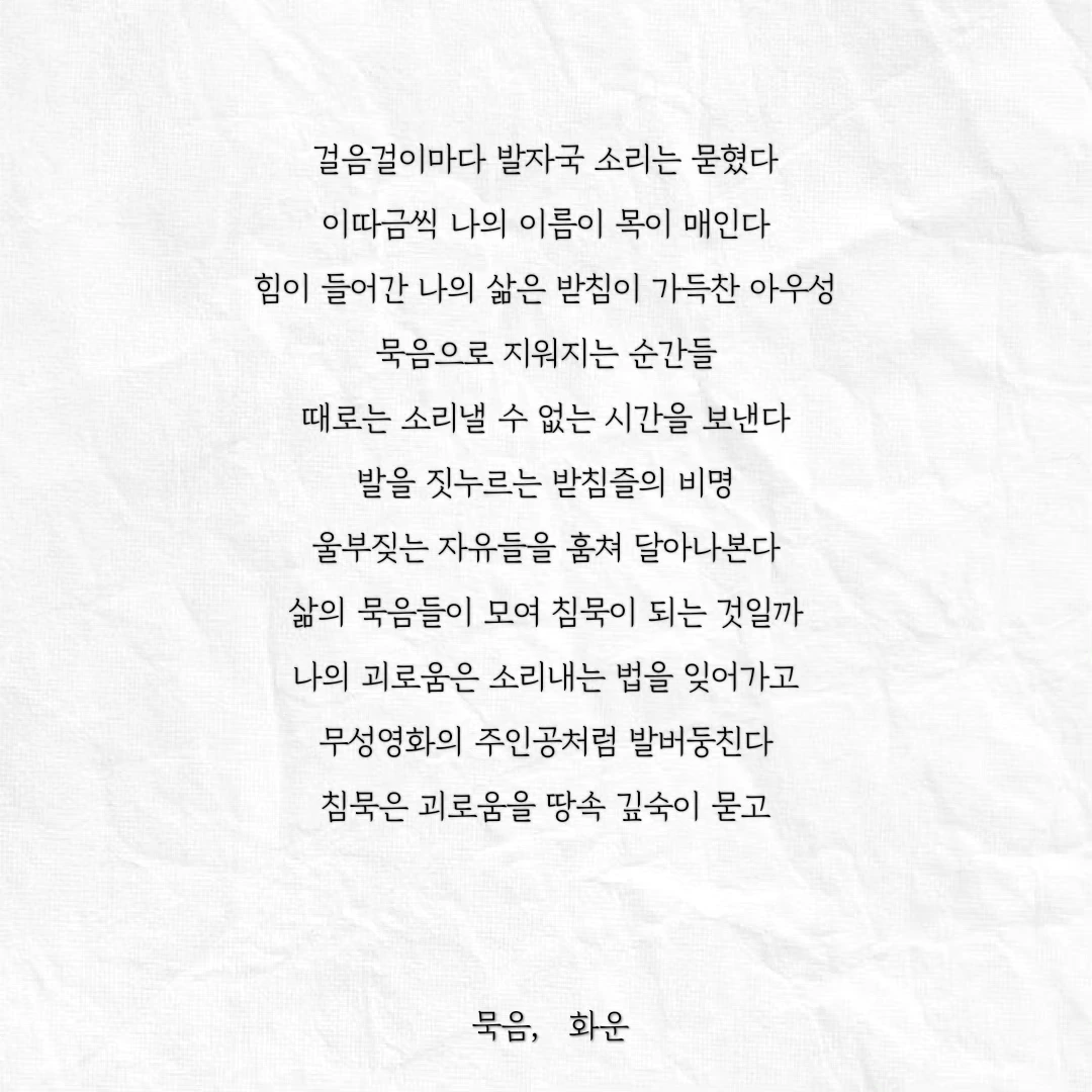 삶의 묵음들이 모여 침묵이 되는 것일까