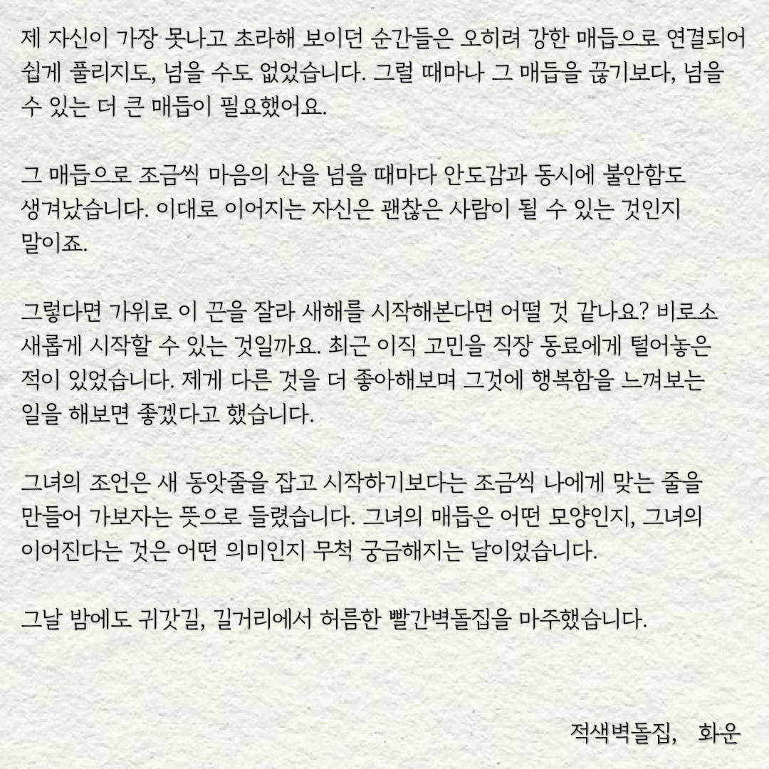 우연히 한 문장, 한 글자 주의 깊게 바라보았습니다. 그 우연이 제 삶에 길을 내어주었습니다. 제 글이 구름처럼 언제든 볼 수 있지만 깊이 있고 위로가 될 수 있으면 좋겠습니다