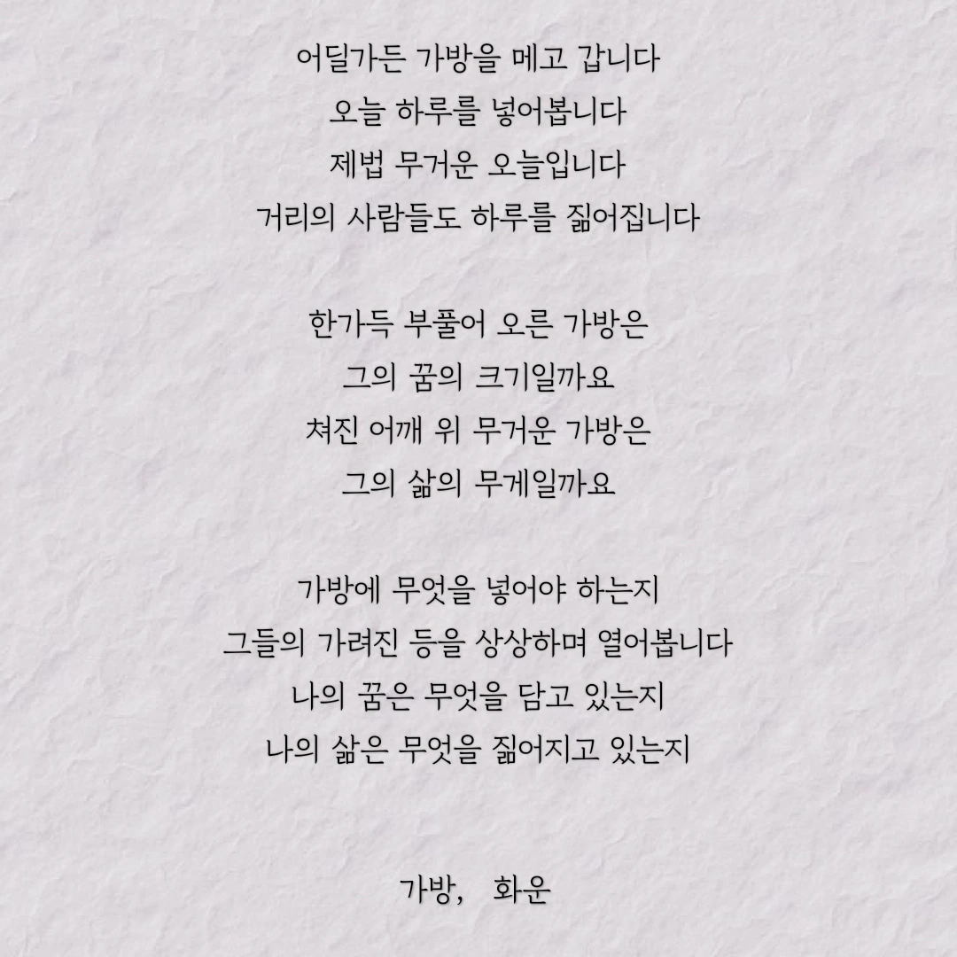 우연히 한 문장, 한 글자 주의 깊게 바라보았습니다. 그 우연이 제 삶에 길을 내어주었습니다. 제 글이 구름처럼 언제든 볼 수 있지만 깊이 있고 위로가 될 수 있으면 좋겠습니다