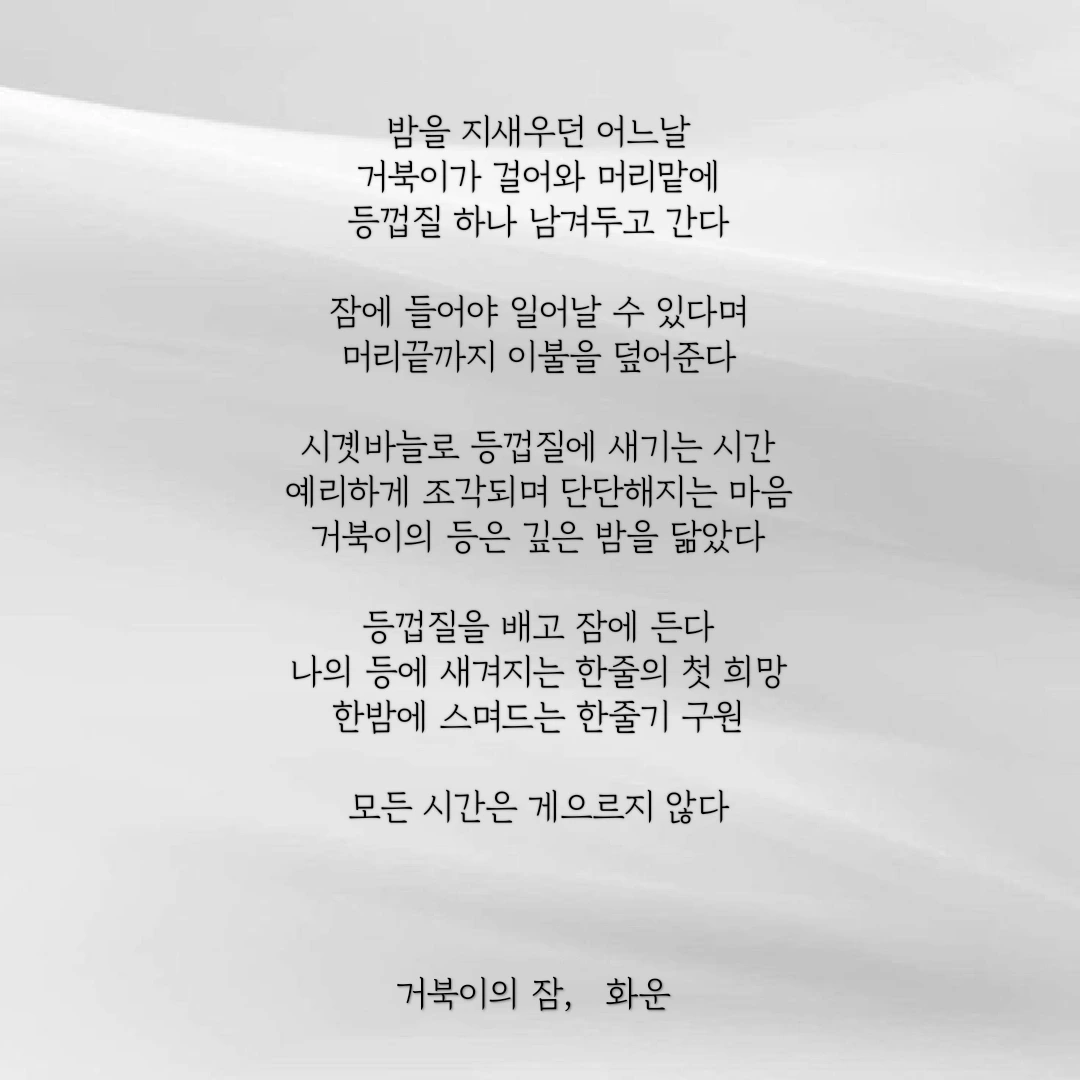 우연히 한 문장, 한 글자 주의 깊게 바라보았습니다. 그 우연이 제 삶에 길을 내어주었습니다. 제 글이 구름처럼 언제든 볼 수 있지만 깊이 있고 위로가 될 수 있으면 좋겠습니다
