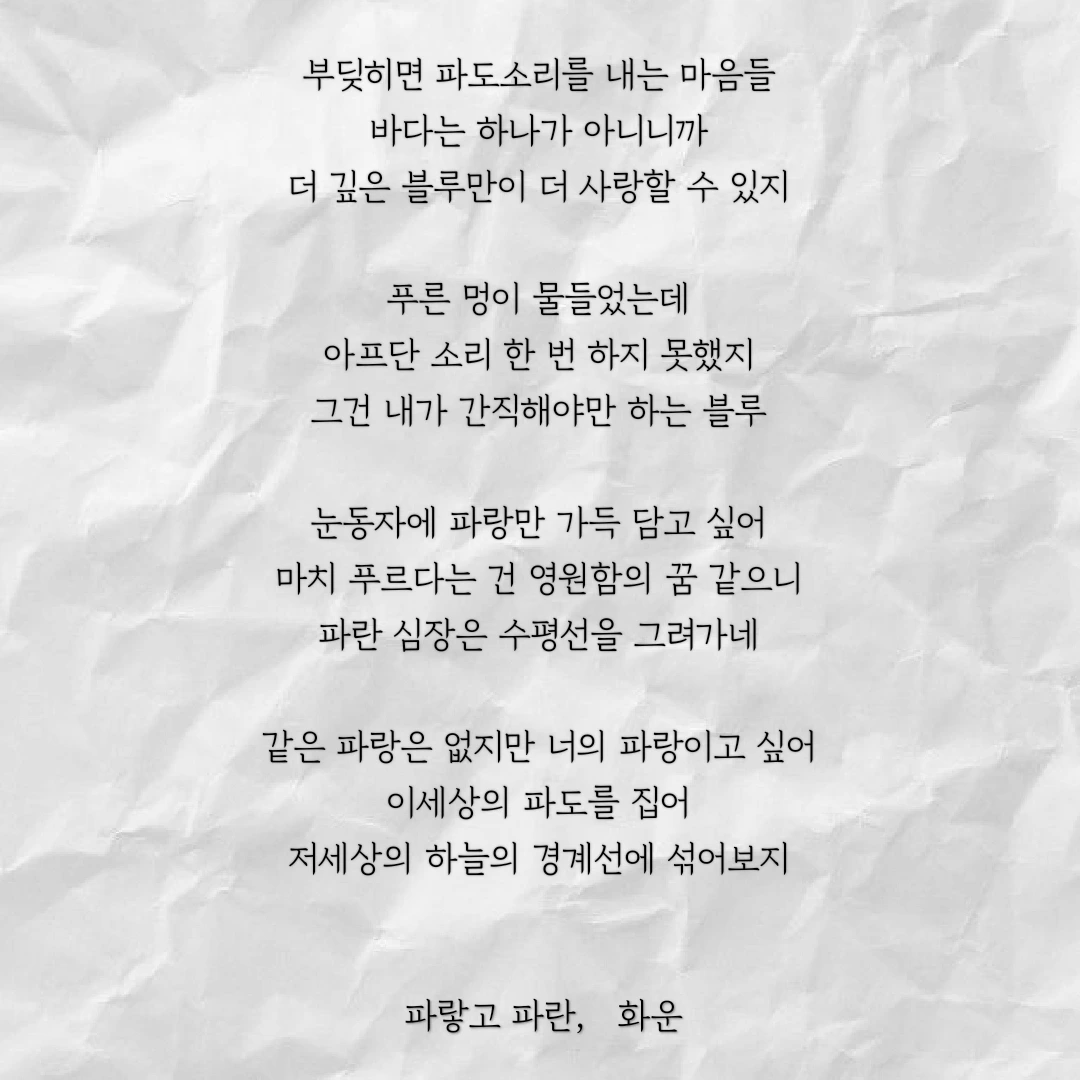 같은 파랑은 없지만 너의 파랑이고 싶어