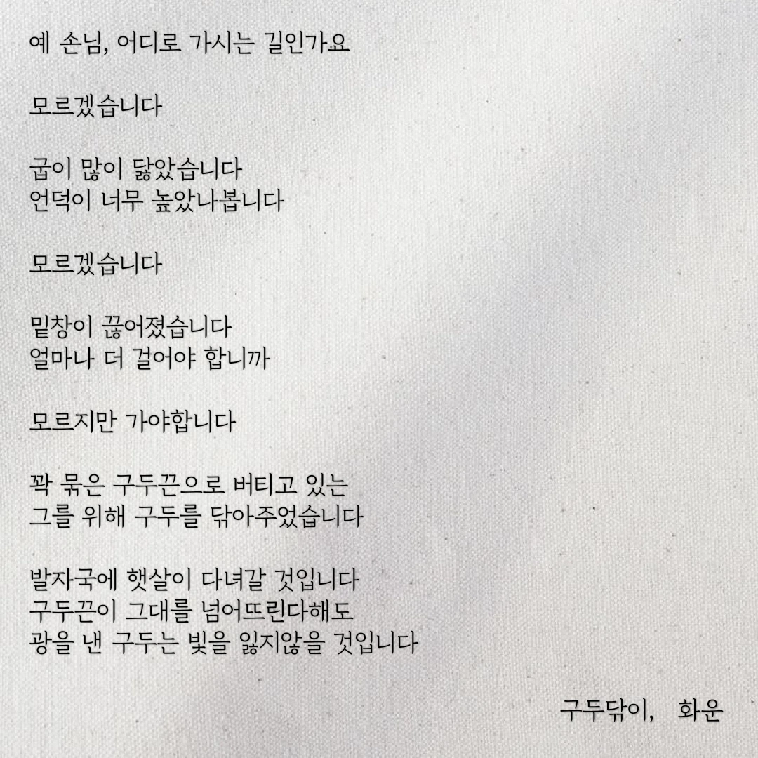 우연히 한 문장, 한 글자 주의 깊게 바라보았습니다. 그 우연이 제 삶에 길을 내어주었습니다. 제 글이 구름처럼 언제든 볼 수 있지만 깊이 있고 위로가 될 수 있으면 좋겠습니다