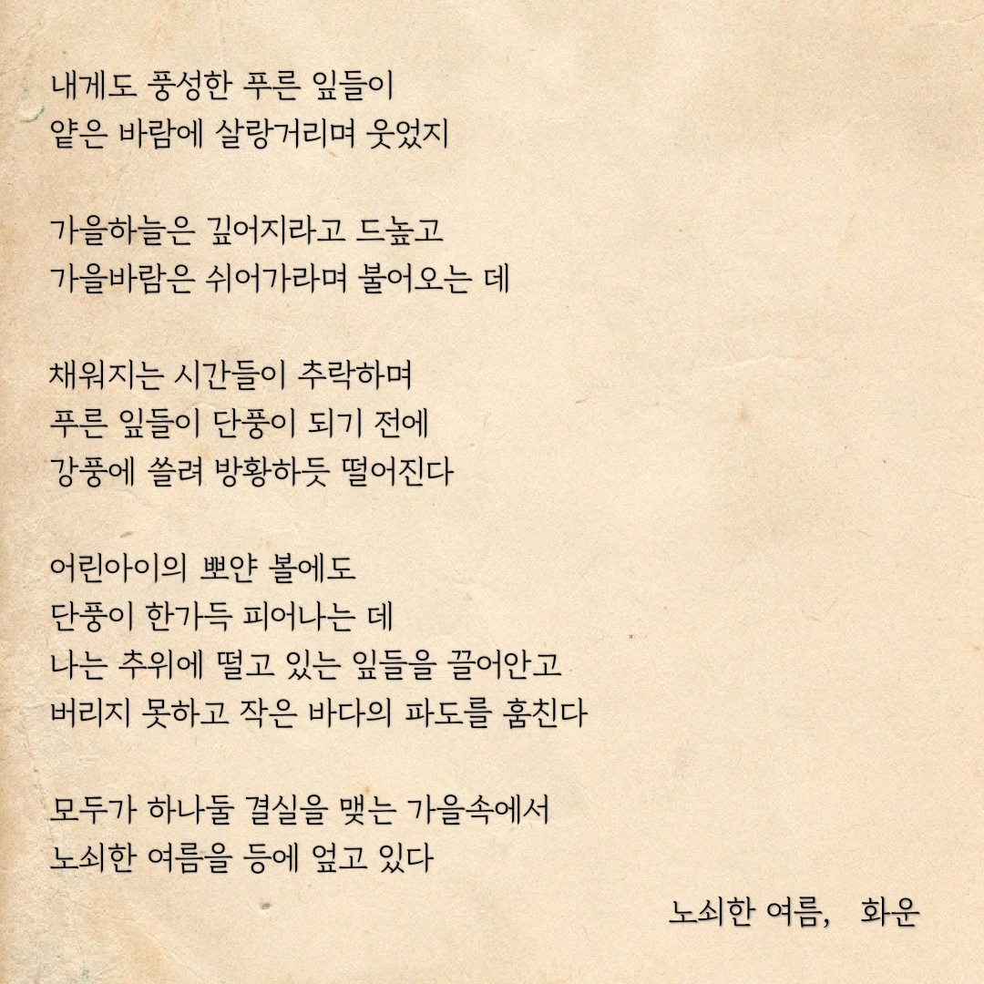 나는 추위에 떨고 있는 잎들을 끌어안고