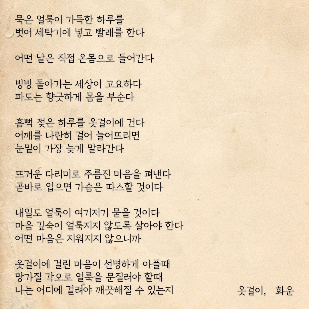 흠뻑 젖은 하루를 옷걸이에 건다