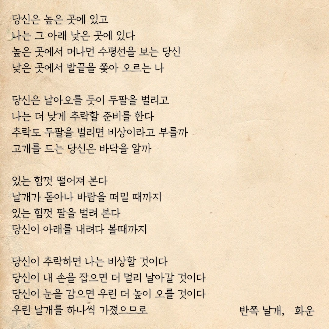 우린 날개를 하나씩 가졌으므로