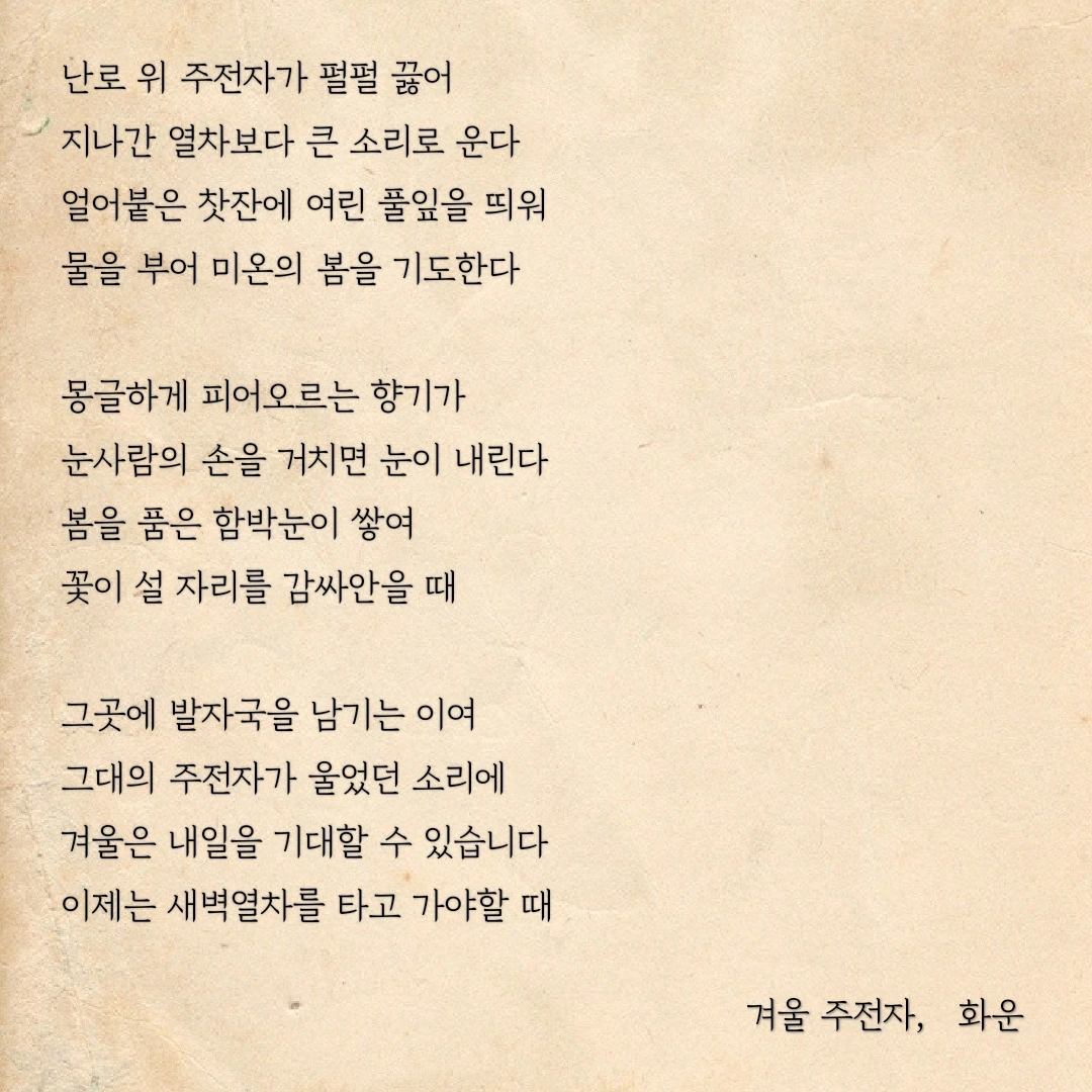 얼어붙은 찻잔에 여린 풀잎을 띄워