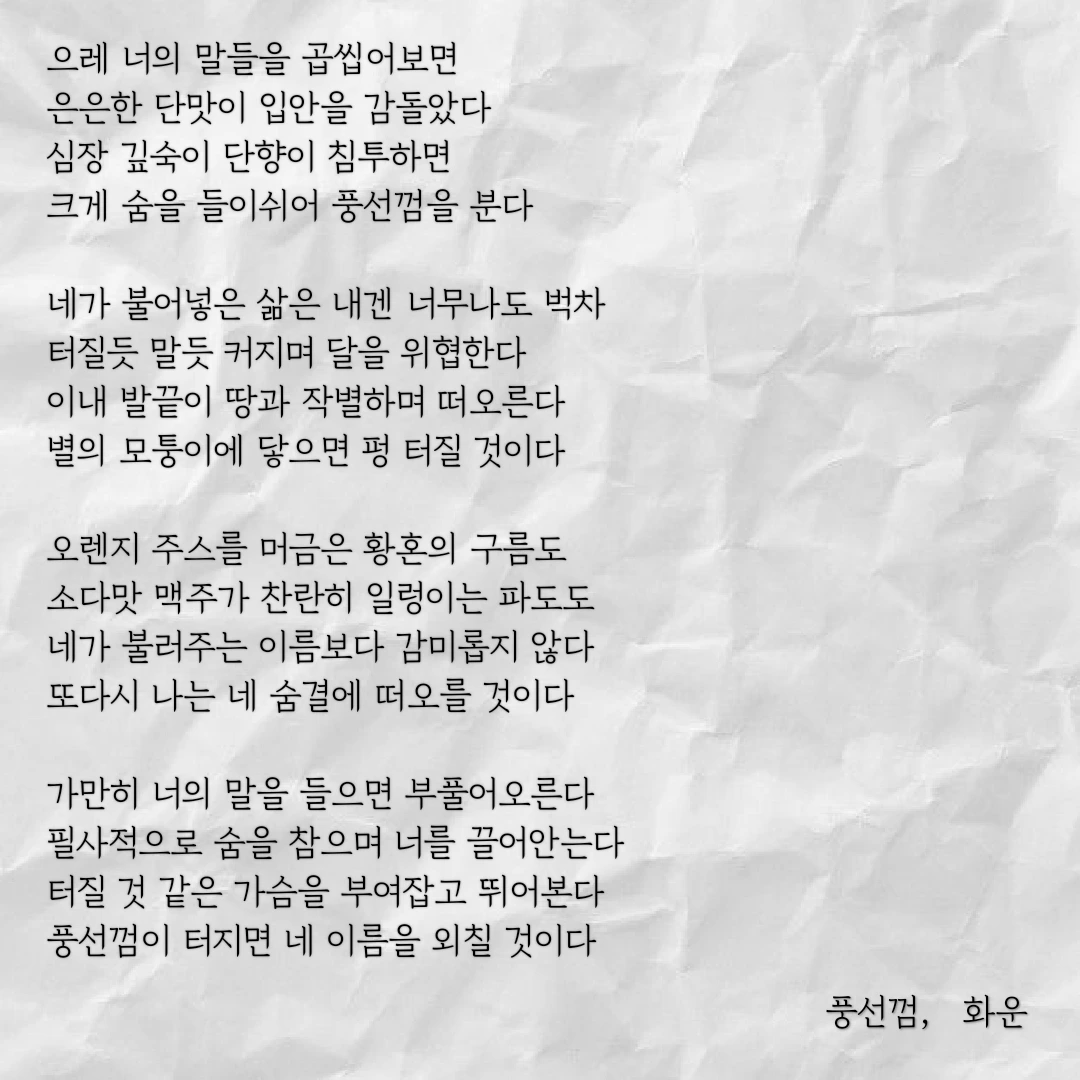 풍선껌이 터지면 네 이름을 외칠 것이다