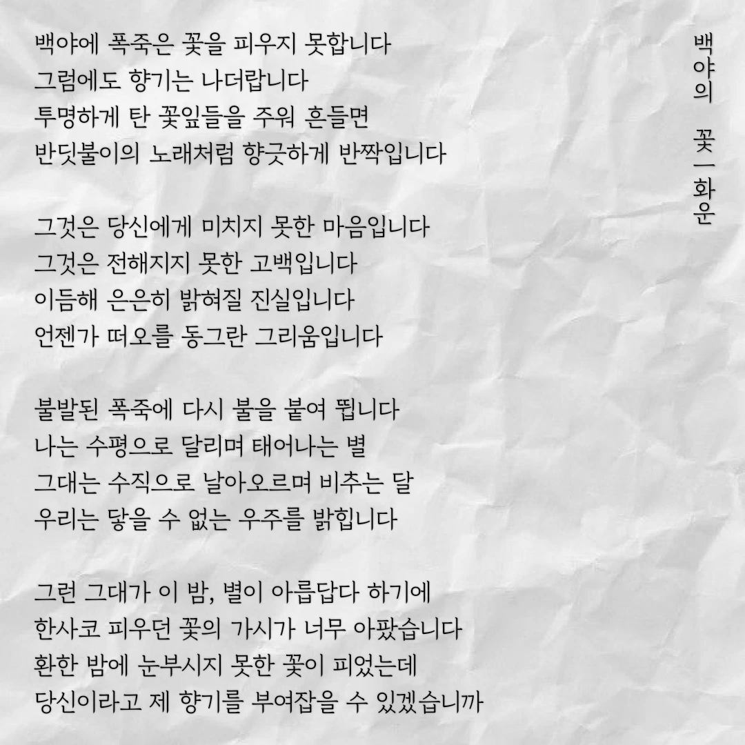 환한 밤에 눈부시지 못한 꽃이 피었는데