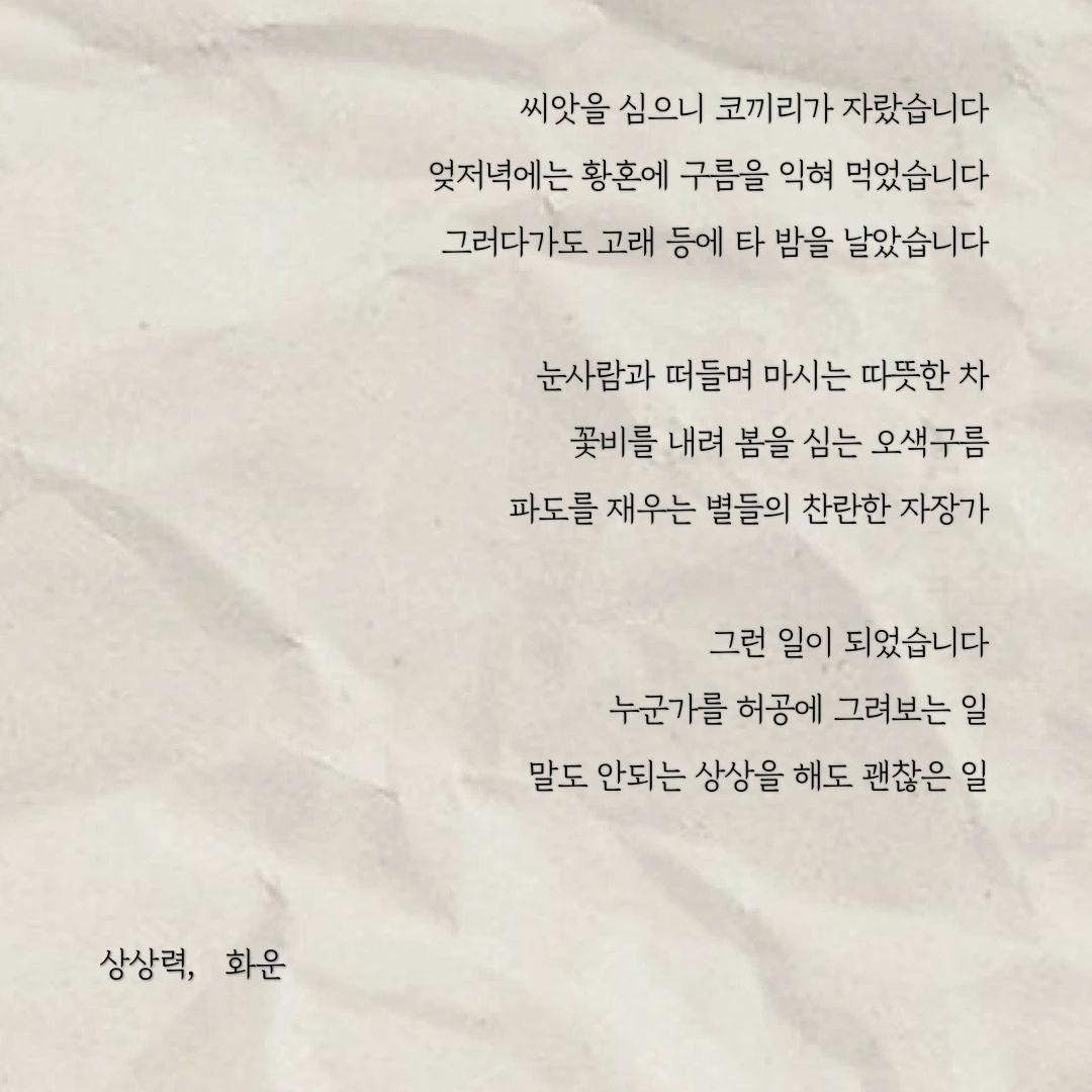 우연히 한 문장, 한 글자 주의 깊게 바라보았습니다. 그 우연이 제 삶에 길을 내어주었습니다. 제 글이 구름처럼 언제든 볼 수 있지만 깊이 있고 위로가 될 수 있으면 좋겠습니다