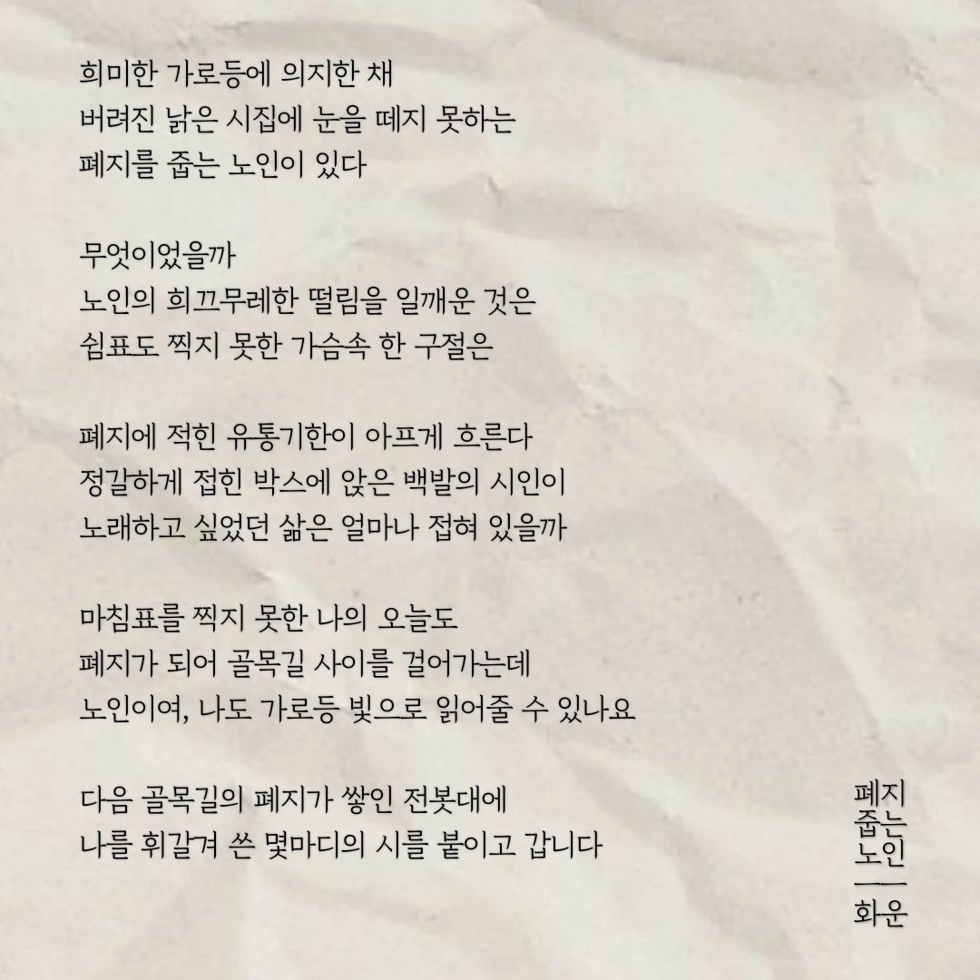 노인이여, 나도 가로등 빛으로 읽어줄 수 있나요