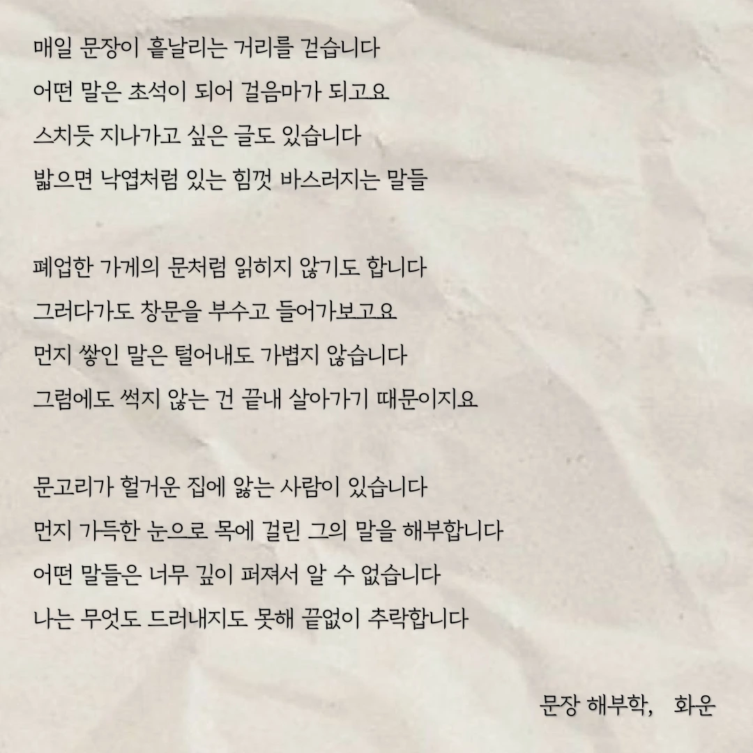 밟으면 낙엽처럼 있는 힘껏 바스러지는 말들