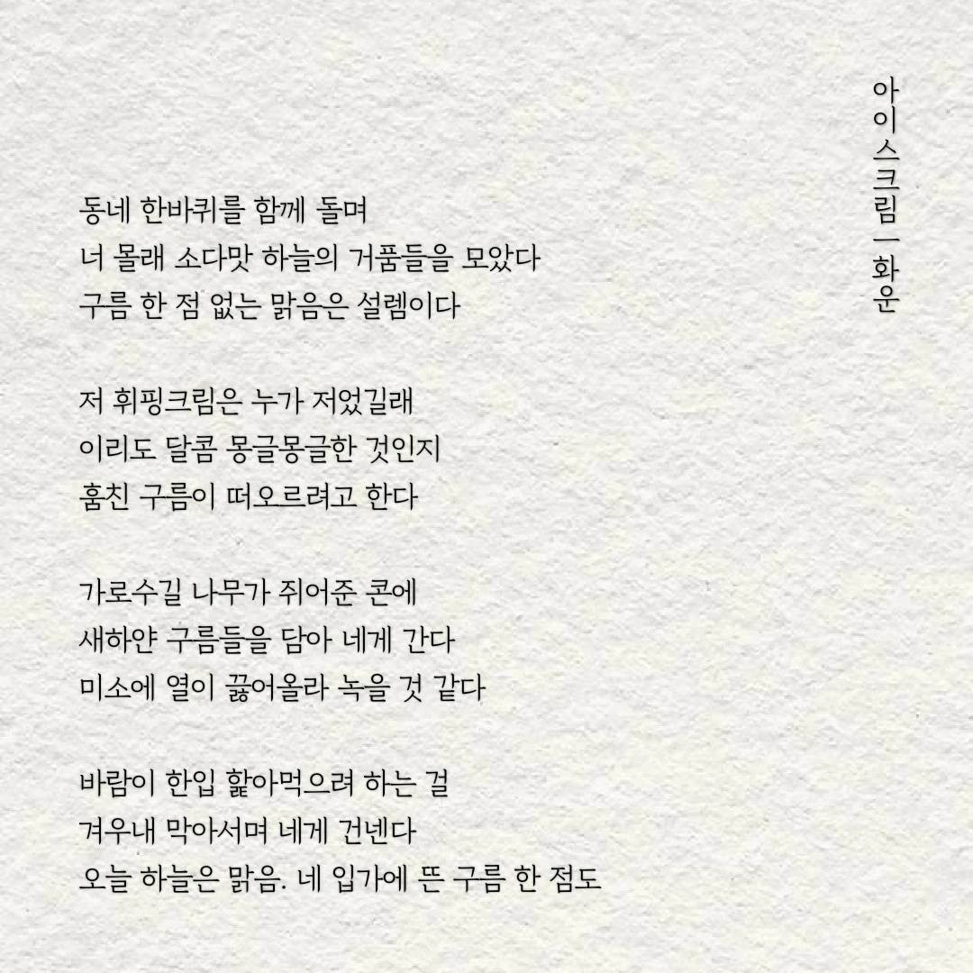 오늘 하늘은 맑음. 네 입가에 뜬 구름 한 점도