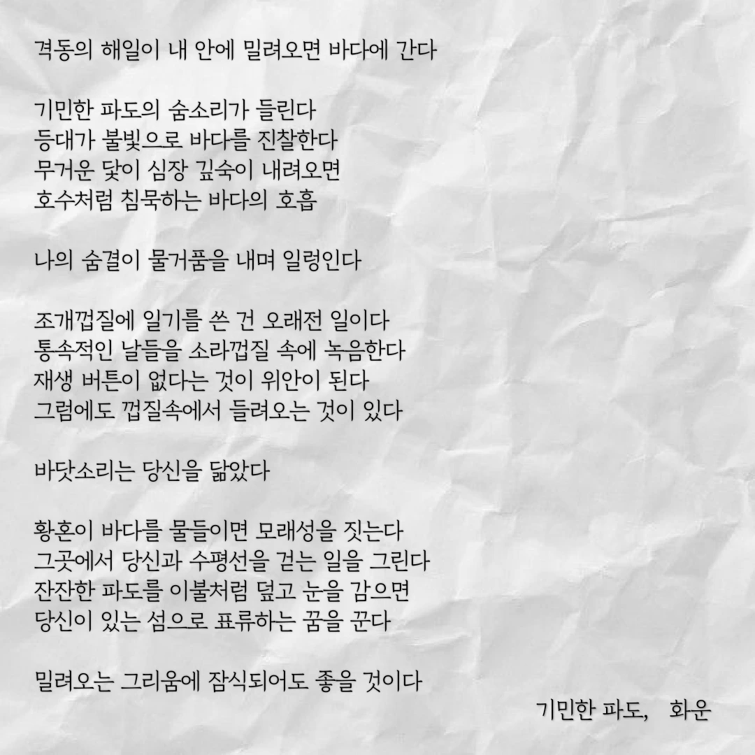 격동의 해일이 내 안에 밀려오면 바다에 간다
