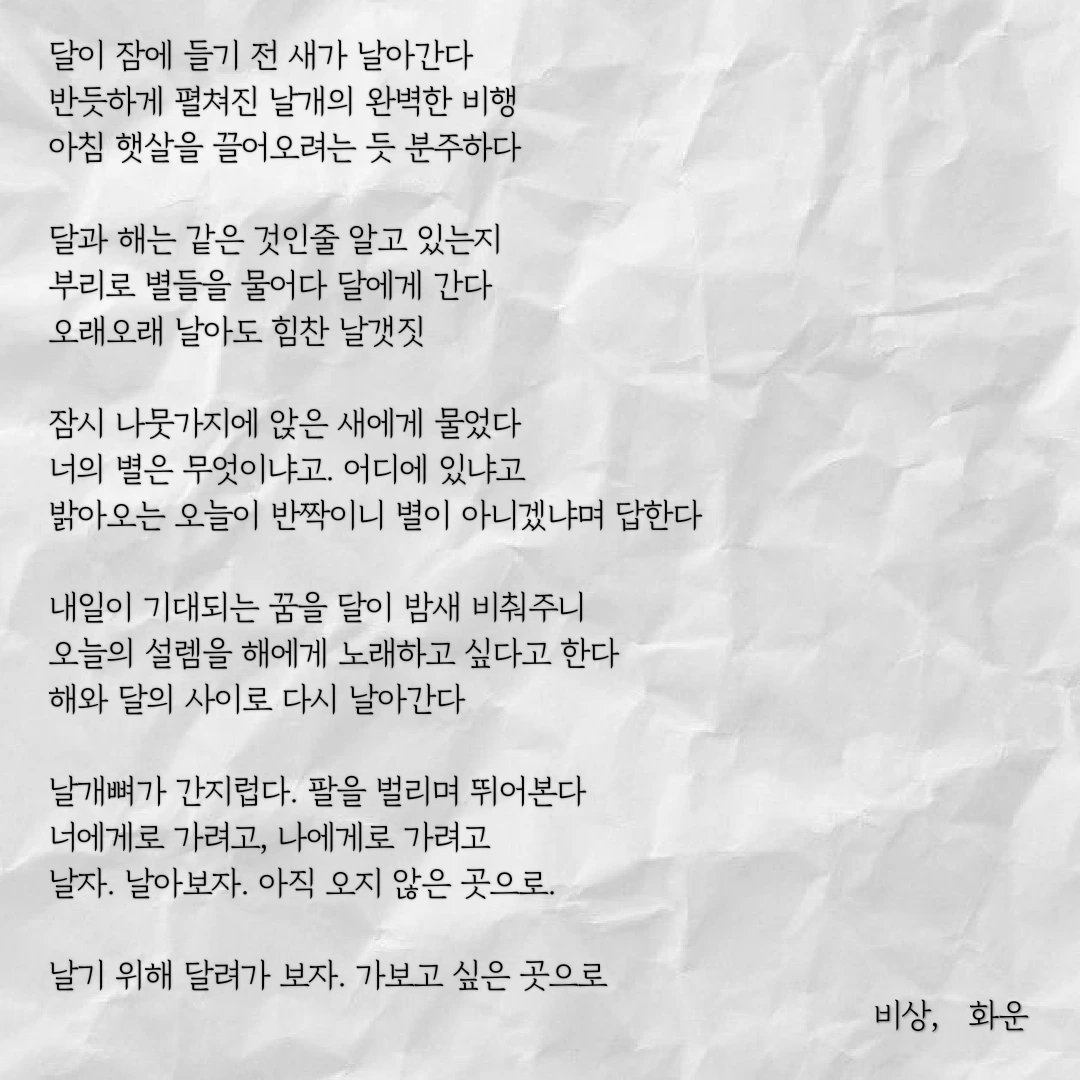 날자. 날아보자. 아직 오지 않은 곳으로.