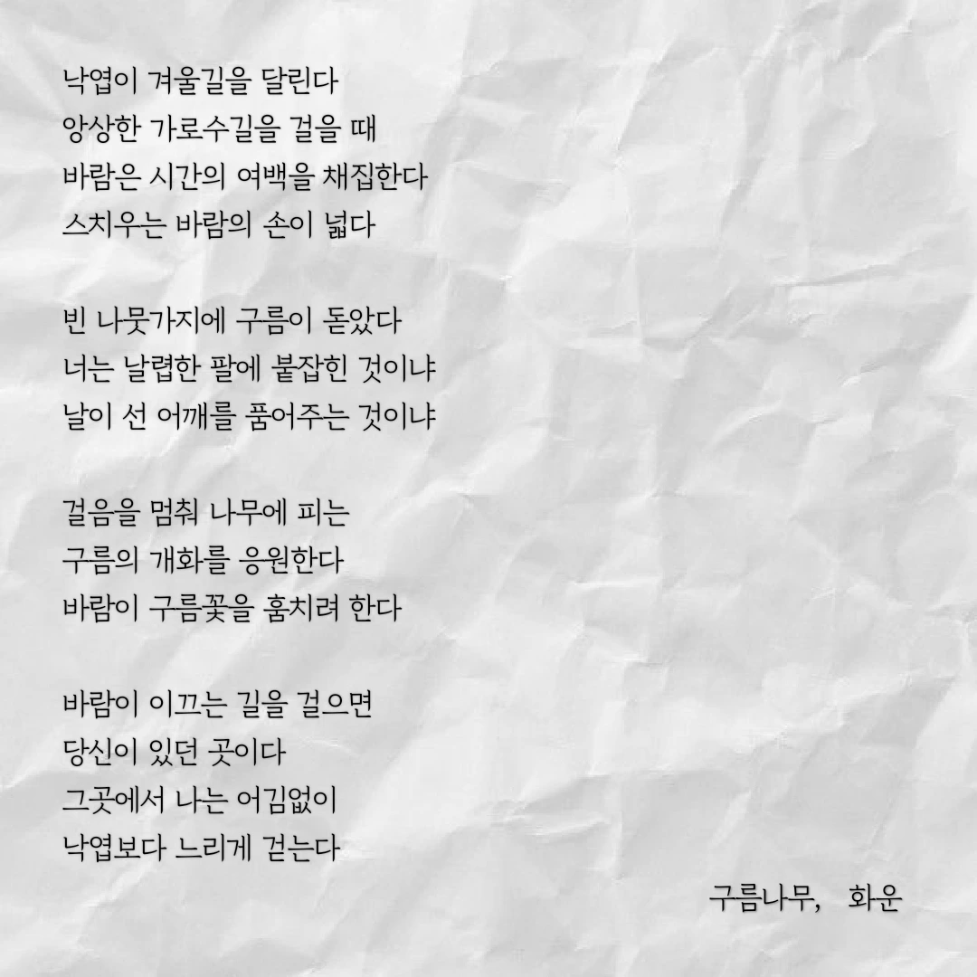 우연히 한 문장, 한 글자 주의 깊게 바라보았습니다. 그 우연이 제 삶에 길을 내어주었습니다. 제 글이 구름처럼 언제든 볼 수 있지만 깊이 있고 위로가 될 수 있으면 좋겠습니다