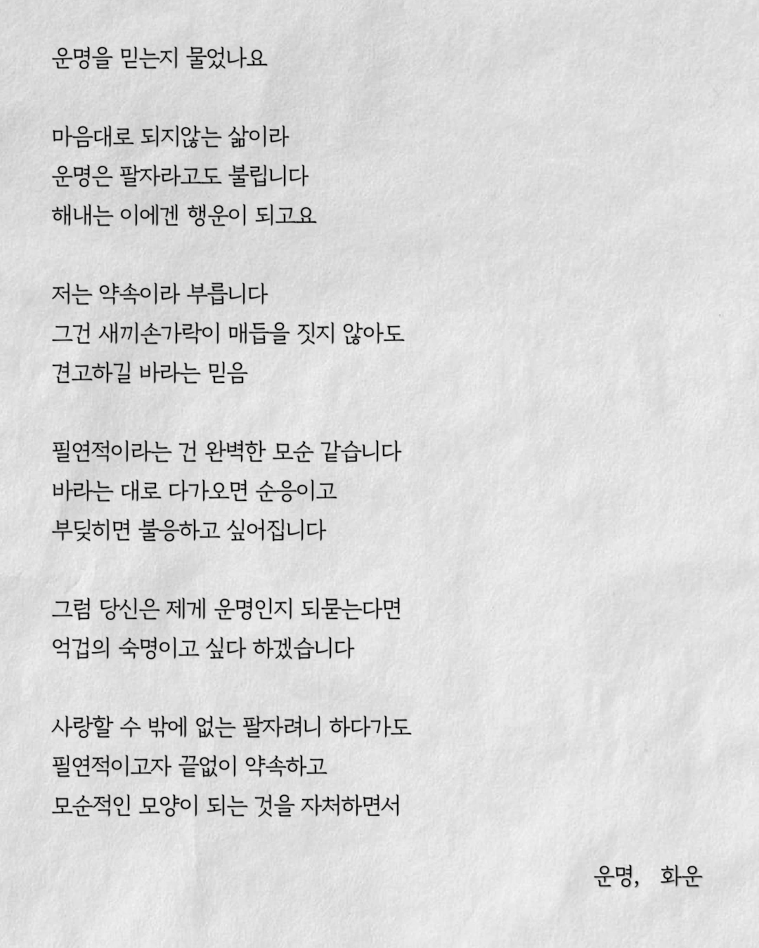 사랑할 수 밖에 없는 팔자려니 하다가도