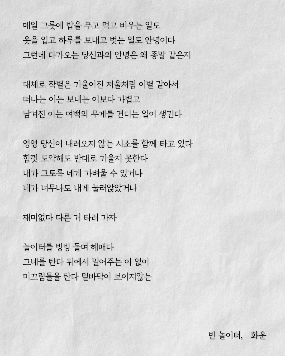 영영 당신이 내려오지 않는 시소를 함께 타고 있다