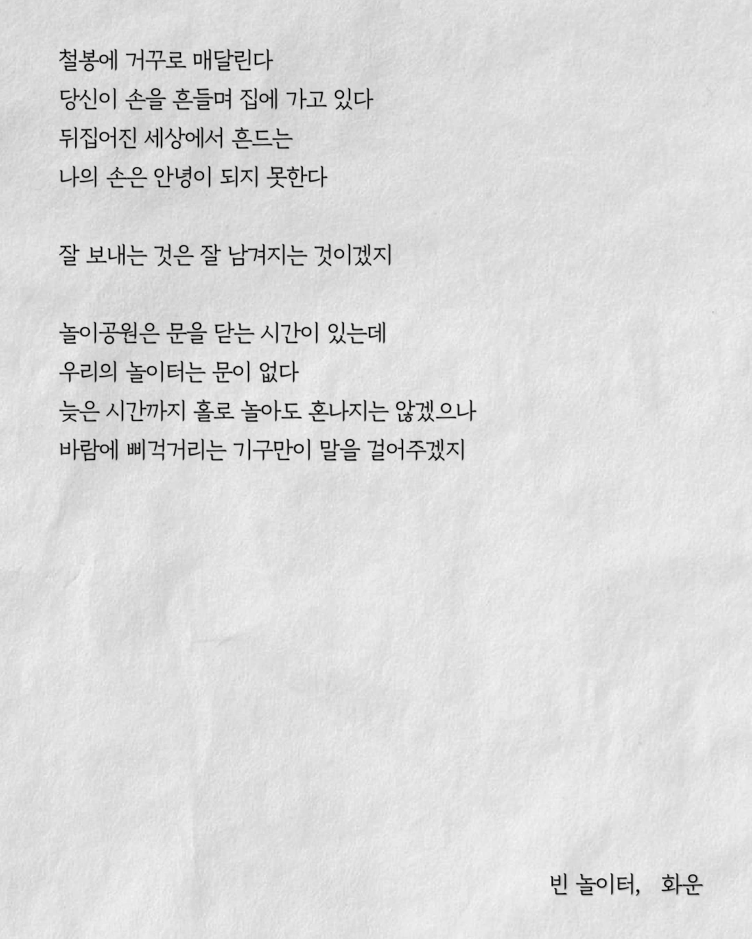 바람에 삐걱거리는 기구만이 말을 걸어주겠지