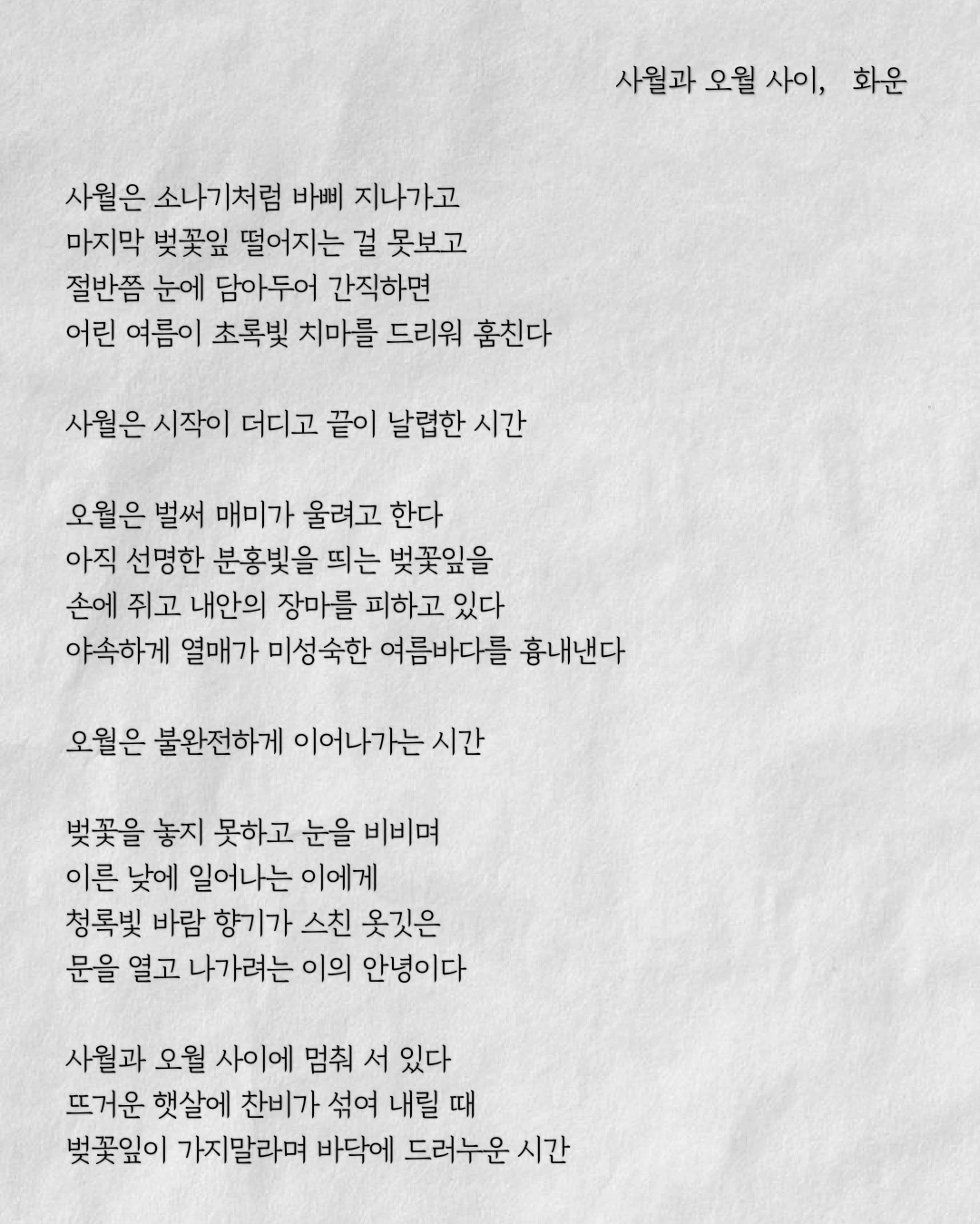 사월과 오월 사이에 멈춰 서 있다