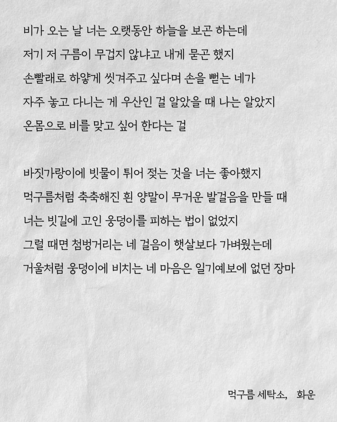 비가 오는 날 너는 오랫동안 하늘을 보곤 하는데
