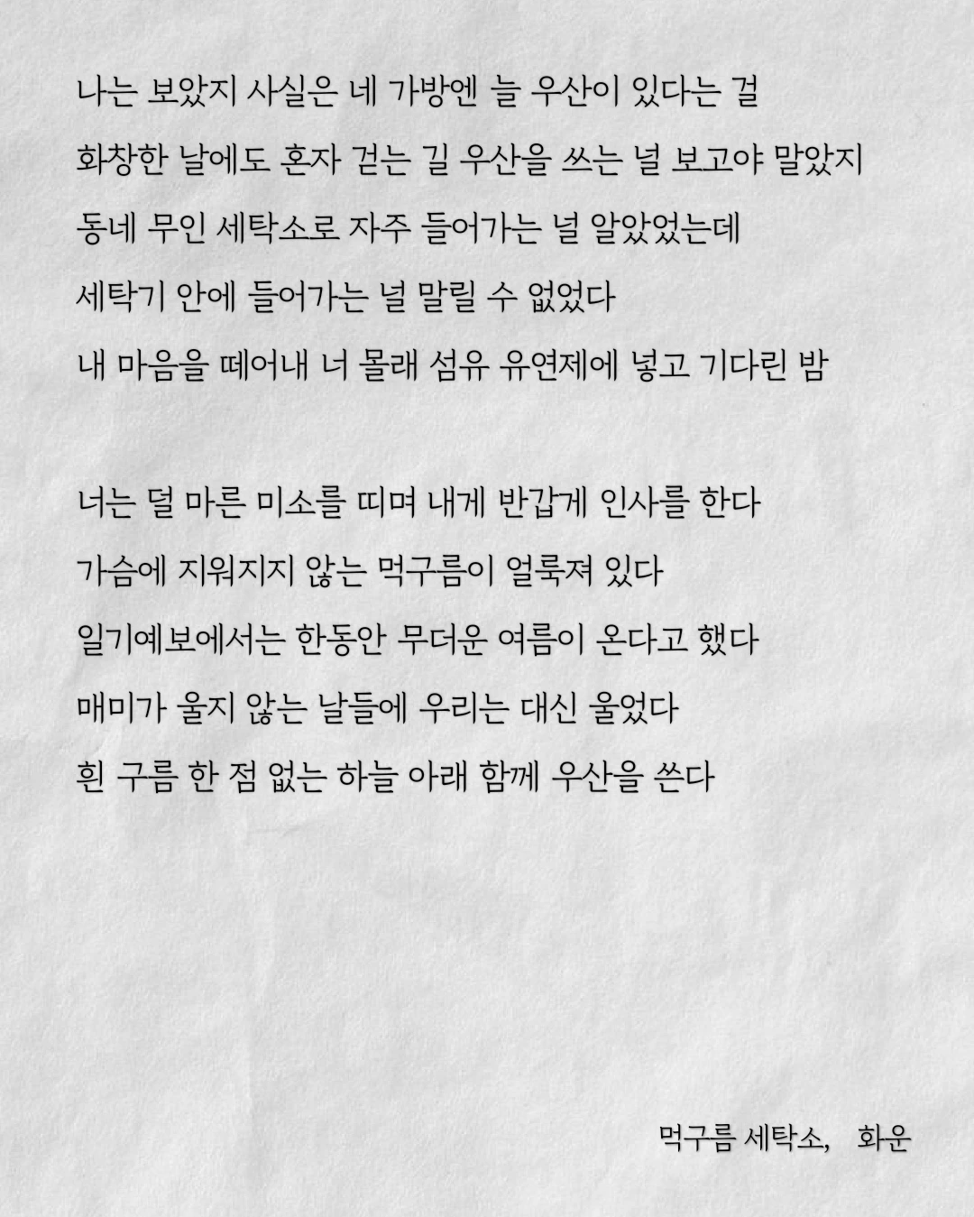 흰 구름 한 점 없는 하늘 아래 함께 우산을 쓴다
