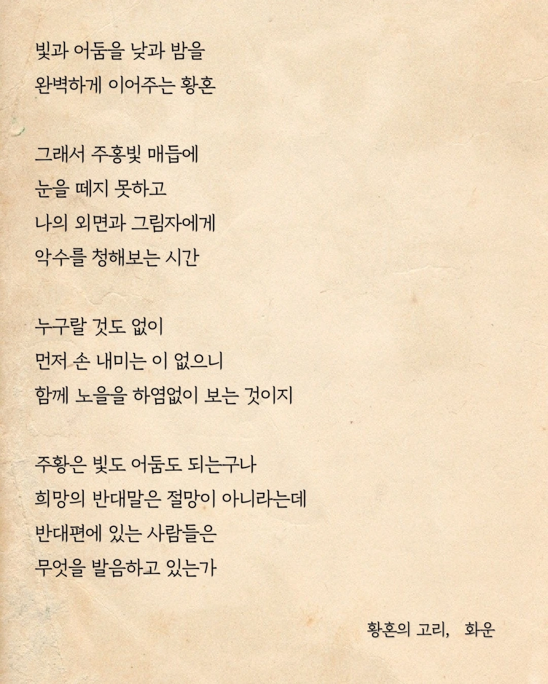 희망을 되뇌이며 황혼에 젖어든다