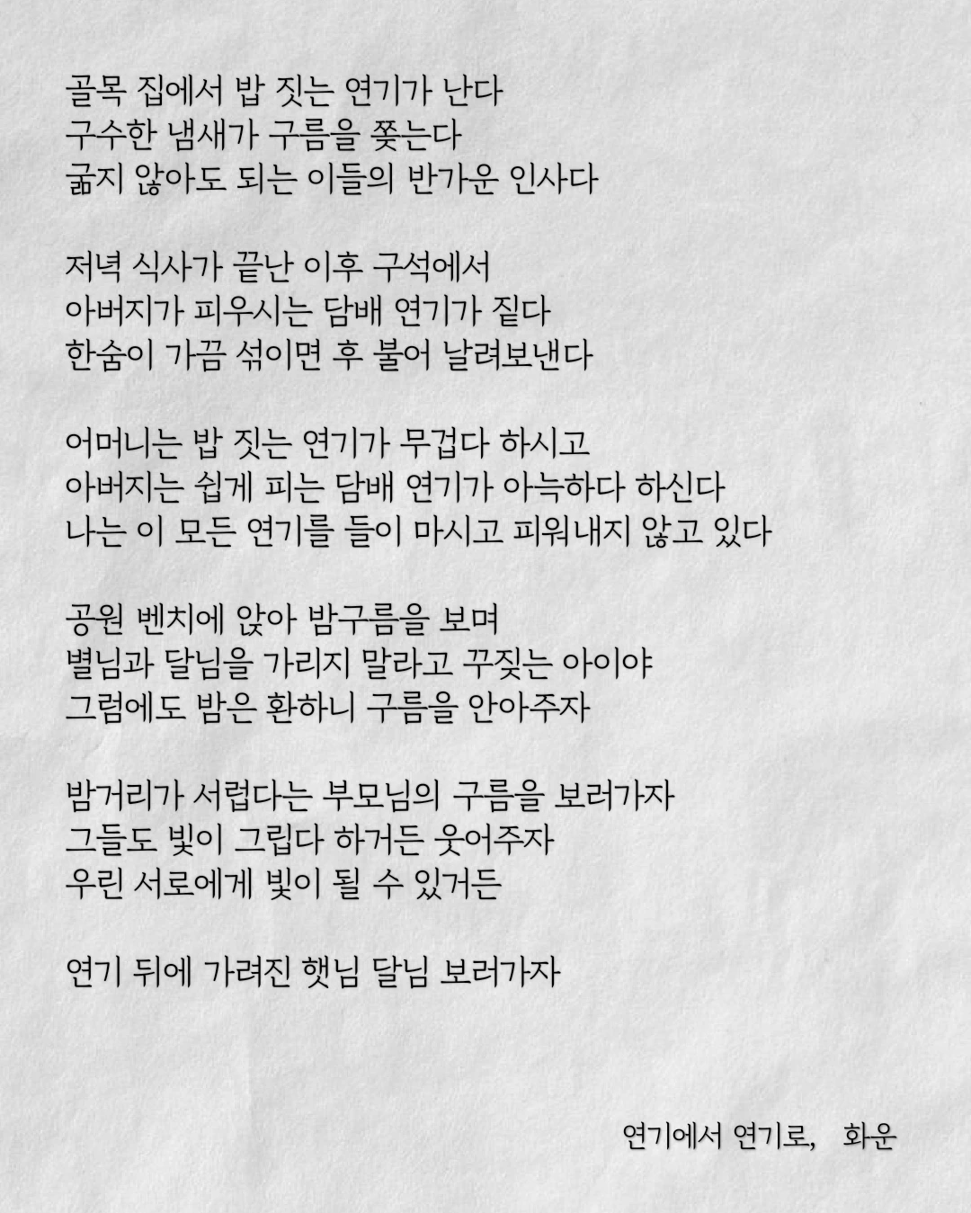 아버지는 쉽게 피는 담배 연기가 아늑하다 하신다