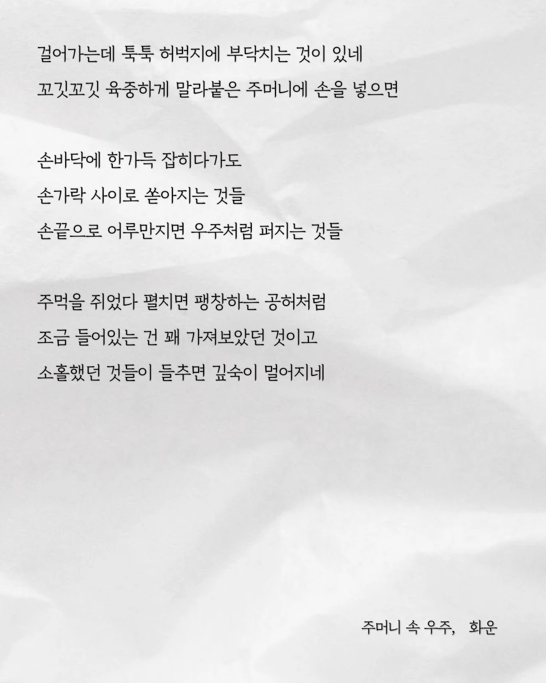 꼬깃꼬깃 육중하게 말라붙은 주머니에 손을 넣으면