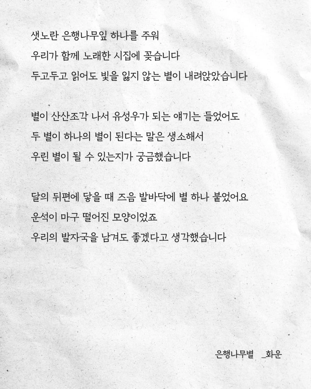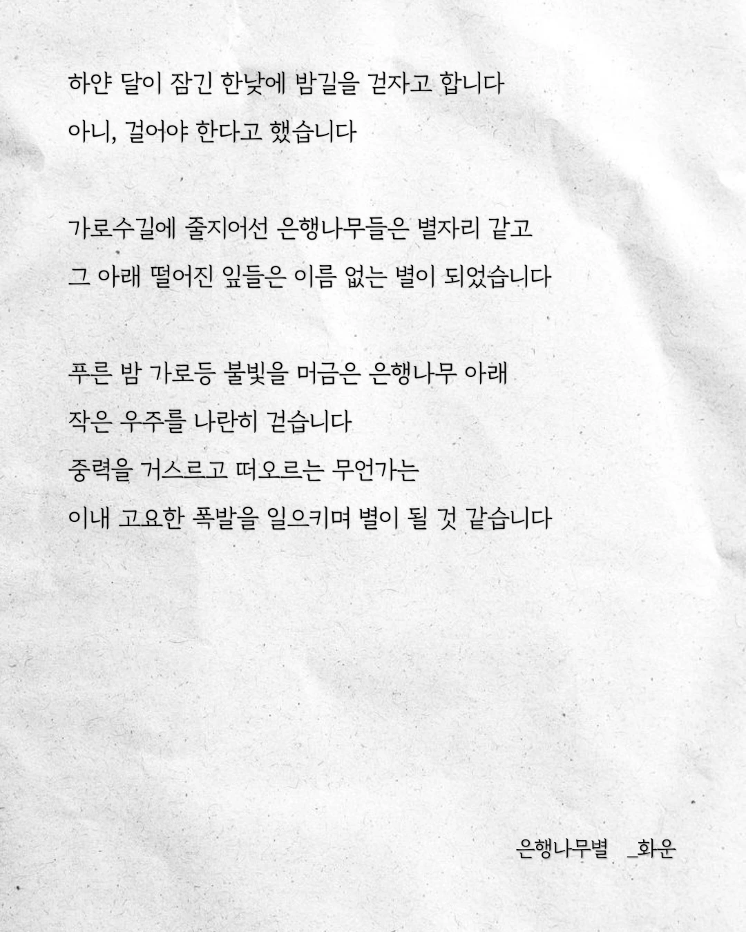 그 아래 떨어진 잎들은 이름 없는 별이 되었습니다