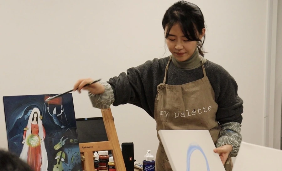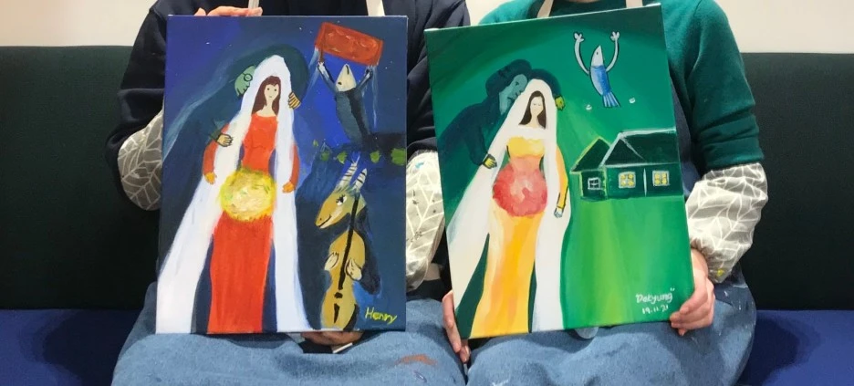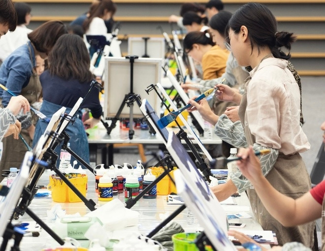 이렇게 마음속 소리 없는 아우성을 무시하며 수업을 시작했다. 이 지긋지긋한 공포는 모두의 캔버스가 반 이상 채워졌을 때부터 서서히 사라졌다. 그날 행사는 예상과는 다르게(?) 잘 마무리되었고, 터덜터덜 홍대에 가서 와인을 마시며 심신을 달랬었다. 대부분의 걱정은 기우에 불과하다는 걸 느꼈던 순간의 기억.
