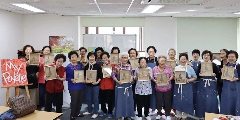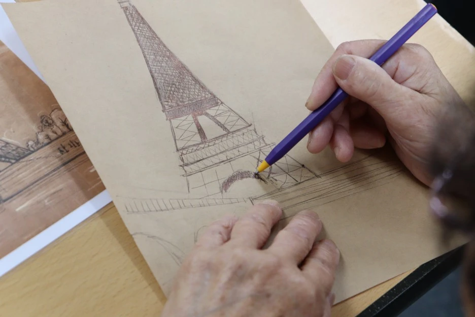 할머니 스무 분이 수업에 참여하셨고, 그날 우리 수업의 주제는 '쉽게 하는 드로잉: 에펠탑 그리기'이었다. 빈 도화지에서부터 에펠탑이 완성되기까지 내가 앞에서 단계별로 시연하면 참가자분들이 호흡에 맞춰 그리는 방식으로 진행했다. 자유화도 좋지만, 성향에 따라 어떤 분들은 의외로 빈종이에서 당혹감과 중압감을 느끼시기도 하기에 이번엔 진행자를 A부터 Z까지 따라 그렸을 때, 낙오자(?) 없이 모두가 ‘완성’이라는 희열과 성취감을 함께 느껴보자는 취지였다. 그림이 주는 성취감은 실로 대단해서 한번 그림을 자기 힘으로 완성해보신 분들은 금세 취미가 되어버리곤 한다. 살면서 우리가 얼마나 자주 ‘완성’을 경험할 수 있을까. 미술로 느끼는 완성의 즐거움은 마치 책 한 권을 다 읽고 마지막 페이지를 넘겼을 때와 비슷한 쾌감일 것이다.