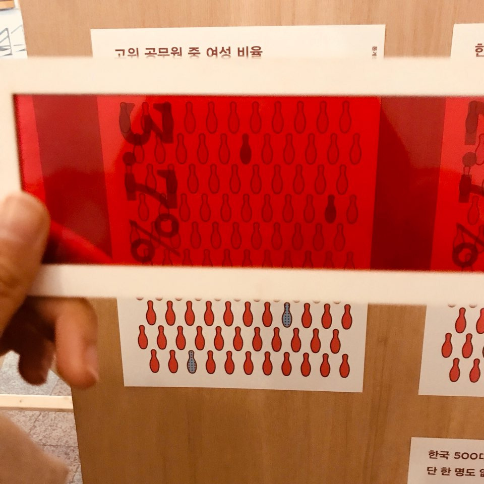 성별 임금격차와 성평등에 대해 관람객이 직접 정보를 얻게 만들며 문제를 인식하게끔 도와준다.