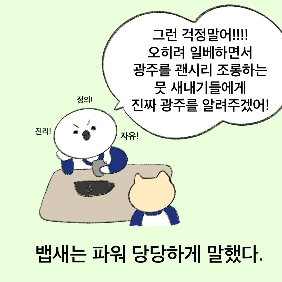연희동 출장집사 완결 후 인스타그램에서 뱁새툰을 연재중입니다. 동물권리 보호에 관심이 많아 재건축지역 고양이 이주 프로젝트를 진행했고, 요즘에는 개그 꿈나무로서 썰을 풀고있습니다.