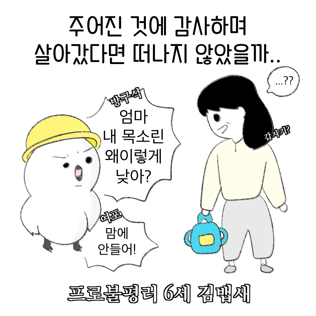 연희동 출장집사 완결 후 인스타그램에서 뱁새툰을 연재중입니다. 동물권리 보호에 관심이 많아 재건축지역 고양이 이주 프로젝트를 진행했고, 요즘에는 개그 꿈나무로서 썰을 풀고있습니다.