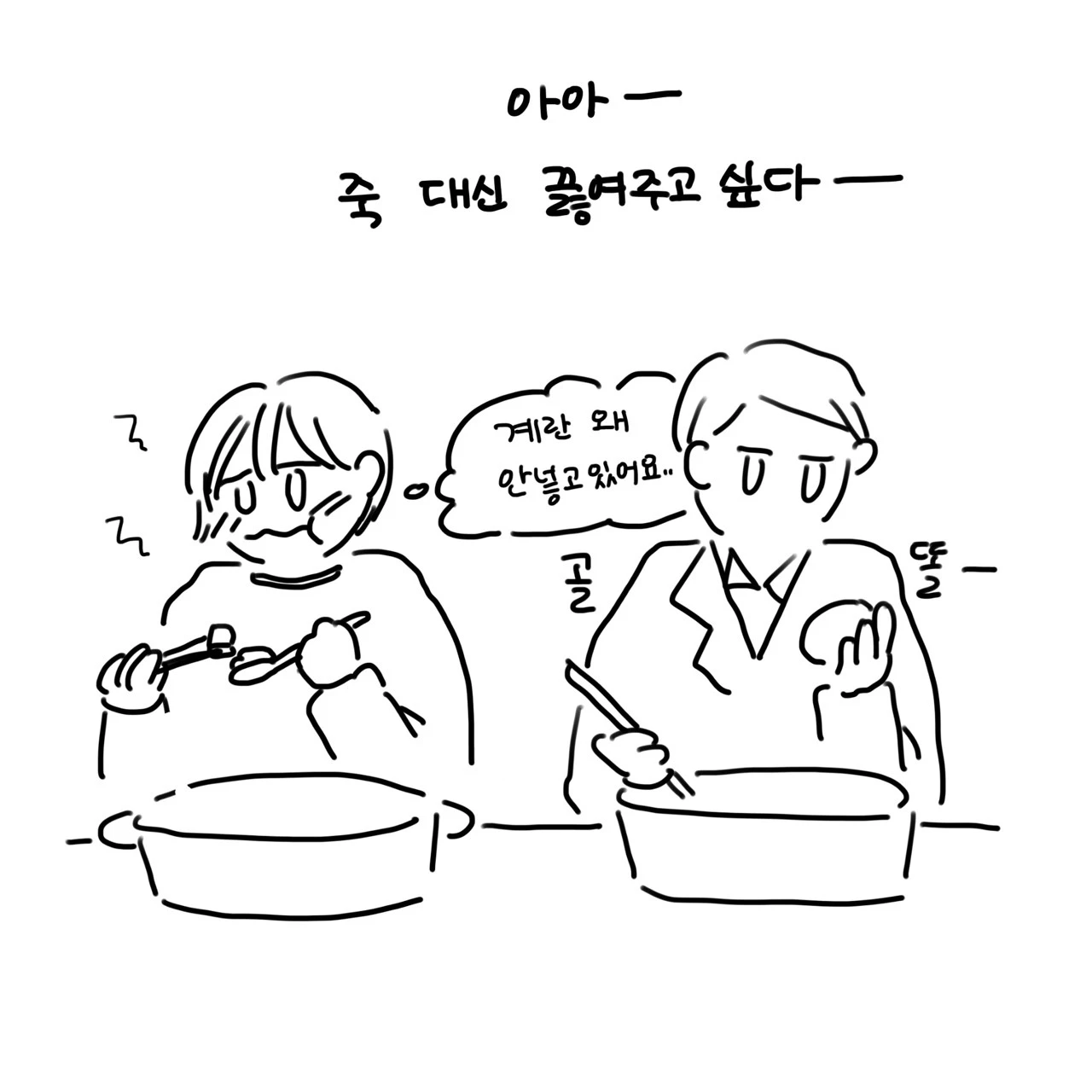 고기를 능숙하게 샥샥 찹, 샥샥 찹, 하고 익힌다. 개그맨 김준현씨가 고기 굽는 리듬에 대해 말한 적이 있다. 칙칙 탁, 칙칙 탁, 이렇게 리듬에 맞춰 끊임없이 먹어줘야 배가 쉽게 부르지 않는다고 했다. 그 말에 동의한다. 나 역시 흐름을 끊지 않고 물 흐르듯 고기를 먹는다. 이제 남은 건 죽이다. 고기와 야채를 끓인 육수에 화룡정점으로 죽까지 먹어야 완성이다.
