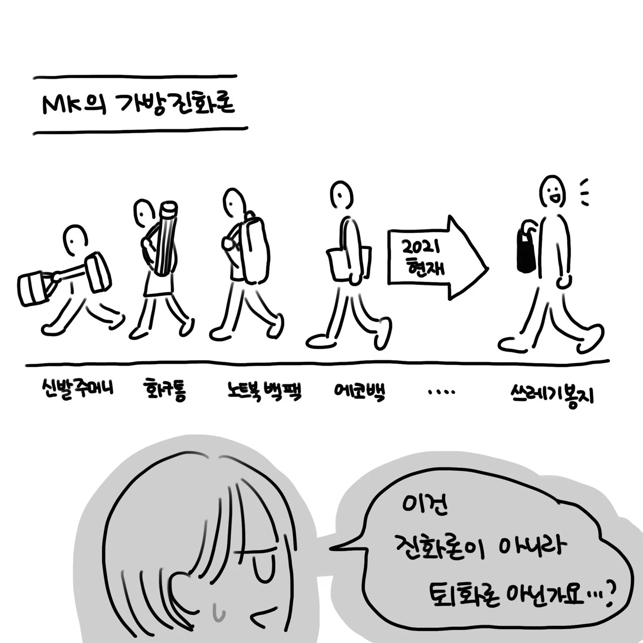 [저 사람은 저게 편해서 다시는 가방을 사지 않을 사람이구만] 하고 생각해주세요.