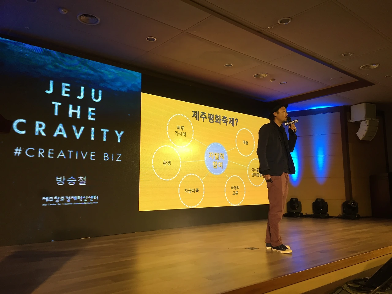 휴식시간에 한 기자가 다가와서 내게 물었다. '감동을 받으며 재밌게 잘 보고 있어요. 그런데 놀랐어요, ICT 벤처에 대한 이야기가 많을 줄 알았는데 그렇지 않네요?' 여기에 내가 답한 것은 다음과 같다. 'ICT 기업을 보육하고 있어요. 내년 크래비티에는 아마 발표하게 되겠죠. 제주에는 이미 많은 창의적 비즈니스가 진행중에 있어요. 크래비티는 현재 일어나고 있는 일들을 발굴하여 드러내고 연결하는 역할을 하려해요. 좋은 회사는 어떤 회사일까요? 미션이 확실히 있는 회사가 지속성장 가능하잖아요. 저는 제주에서 어떤 영역의 사업을 하느냐보다 더 중요한 것은 미션, '왜 제주에서 하는가'일 것이라 생각해요.'