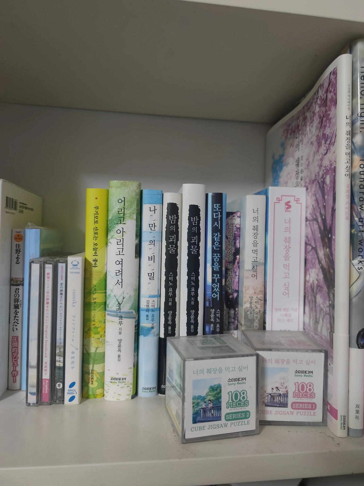 끝이 아니었다. 코믹스도 샀다. 코믹스에 따른 가이드북도 샀다. 영화관람도 했다. 애니메이션 극장판도 관람했다. 영화랑 애니메이션 초회한정 특전도 받았다.(영화관 별로 상품이 상이했다. CGV, 메가박스, 롯데시네마) 뿐만 아니라 맞추지도 않을 퍼즐을 2세트나 샀다.(그것도 대구까지 가서) 일본 아마존에서 음원까지 샀고, 음원을 들으려 시디플레이어까지 구매했다. 일본에 여행 가서는 읽지도 못하는 일어 원서도 샀다. 그리고 절판된 음원에 들어가는 표지 일러스트레이트 책까지 구입했다. 책의 주요한 아이템으로 등장하는 한정판으로만 주던 [공병문고]라는 노트까지 선착순으로 구했다. 일본어 오디오북도 일본 오디오북 사이트에 가입해서 샀다.(한국오디오북도 안 듣는데)