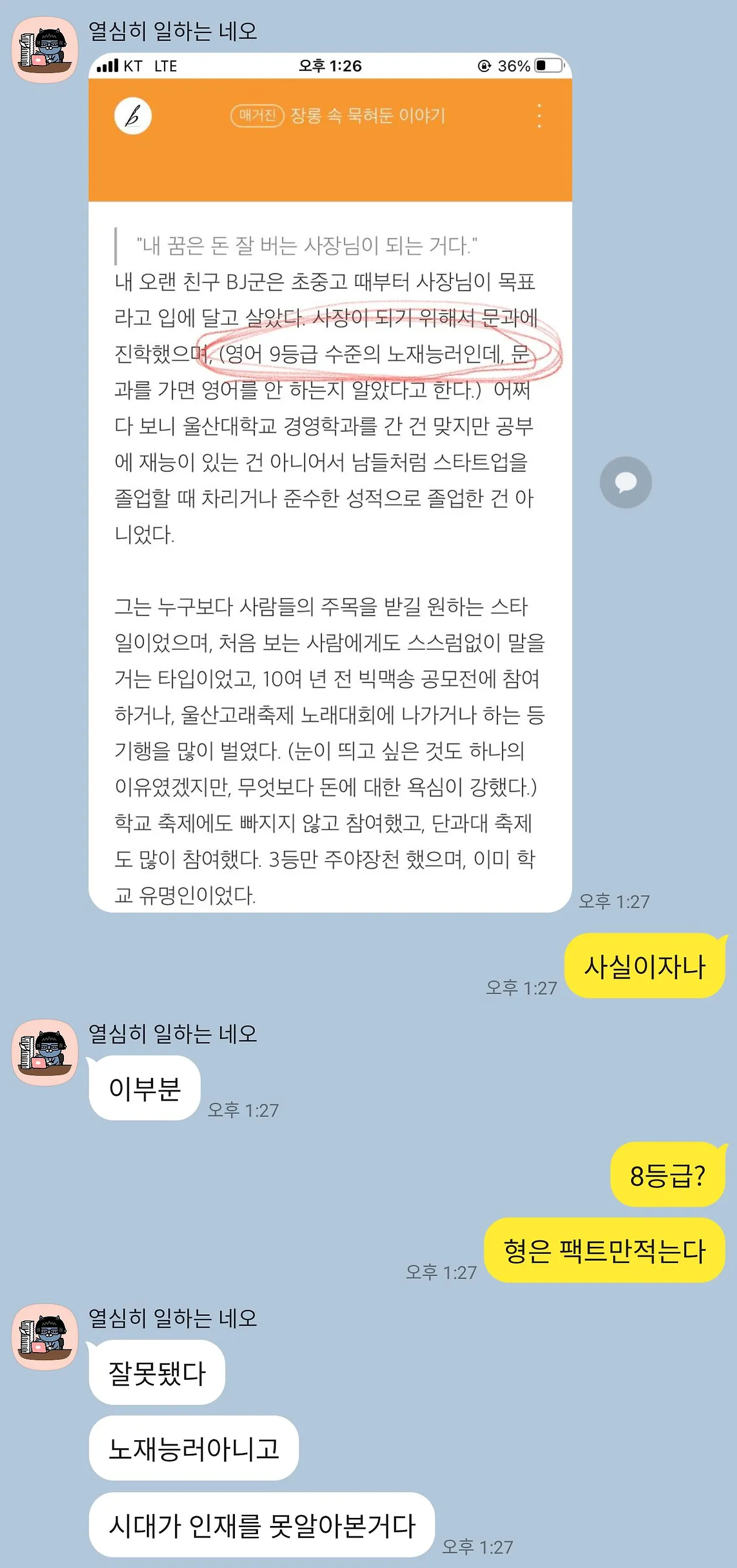 내 오랜 친구 BJ군은 초중고 때부터 사장님이 목표라고 입에 달고 살았다. 사장이 되기 위해서 문과에 진학했으며, (영어 9등급 수준의 노재능러인데, 문과를 가면 영어를 안 하는지 알았다고 한다.) 어쩌다 보니 울산대학교 경영학과를 간 건 맞지만 공부에 재능이 있는 건 아니어서 남들처럼 스타트업을 졸업할 때 차리거나 준수한 성적으로 졸업한 건 아니었다.