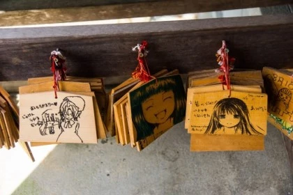 - 시라카와고 마을 내의 [하지만 신사]. 애니메이션 [쓰르라미 울적에]의 후루데 신사의 배경지. 팬들이 찾아와 흔적을 남기고 가는 세계문화유산내의 유일한 성지순례장소여서 재밌게 봤습니다. 성지순례라는 단어가 왜 나왔는지 알 것 같더라구요. (이래서 사람들이 성지순례를 하는구나! 뭔가 강한 동질감)