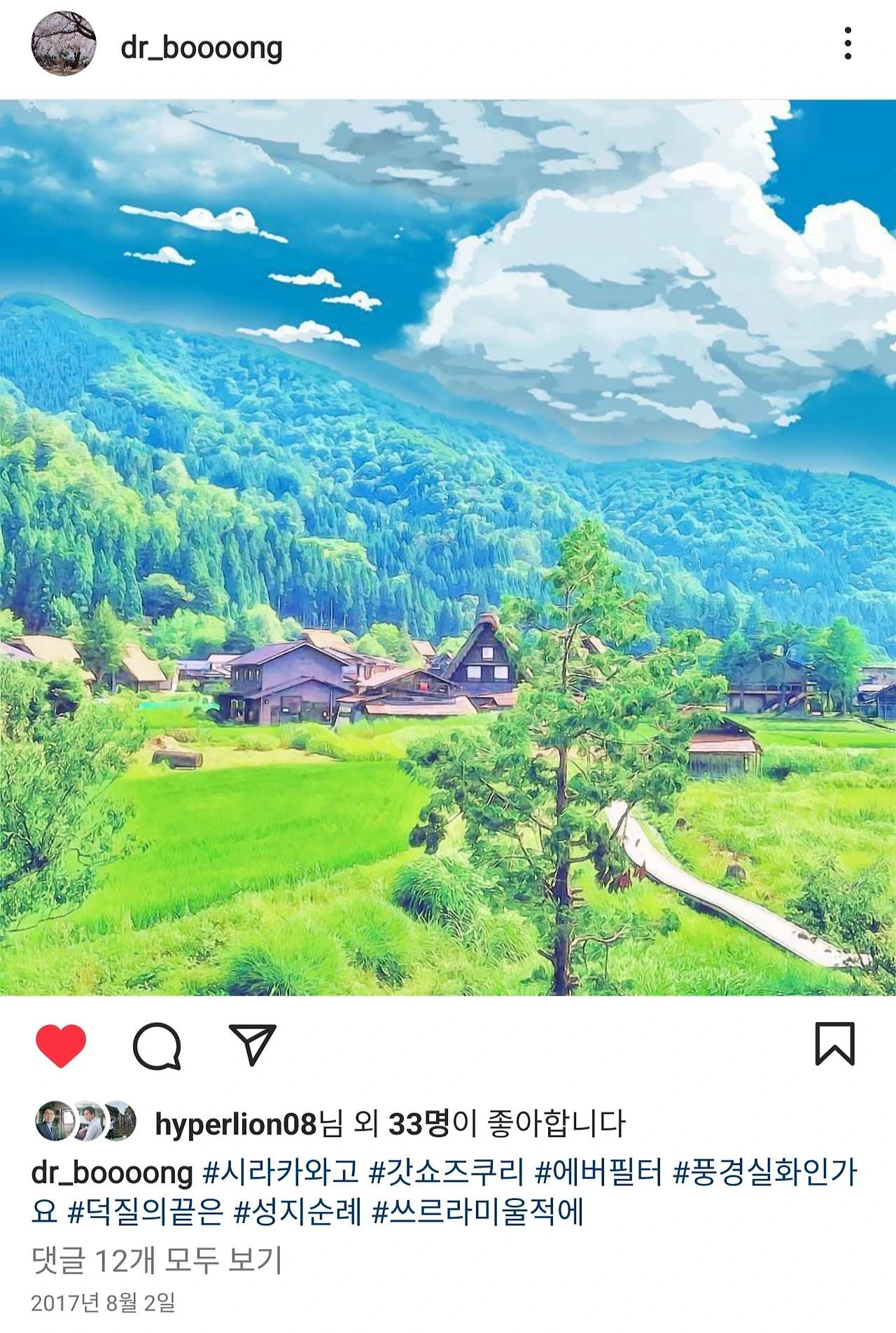제가 여러 번 일본 여행을 다니면서 수많은 먹거리 사진을 SNS에 올렸었는데, 그런 와중에도 찍어올린 몇 안되는 풍경 중 하나가 바로 여기였지요. 그리고 제 주변지인들은 그 사진을 보고 말하더군요. "정말 갔네" . 제가 여기 온것도 믿어지지 않는데, 제 주변 지인들이라고 오죽했겠습니까. 늘 시라카와고 시라카와고 노래를 불렀었거든요.