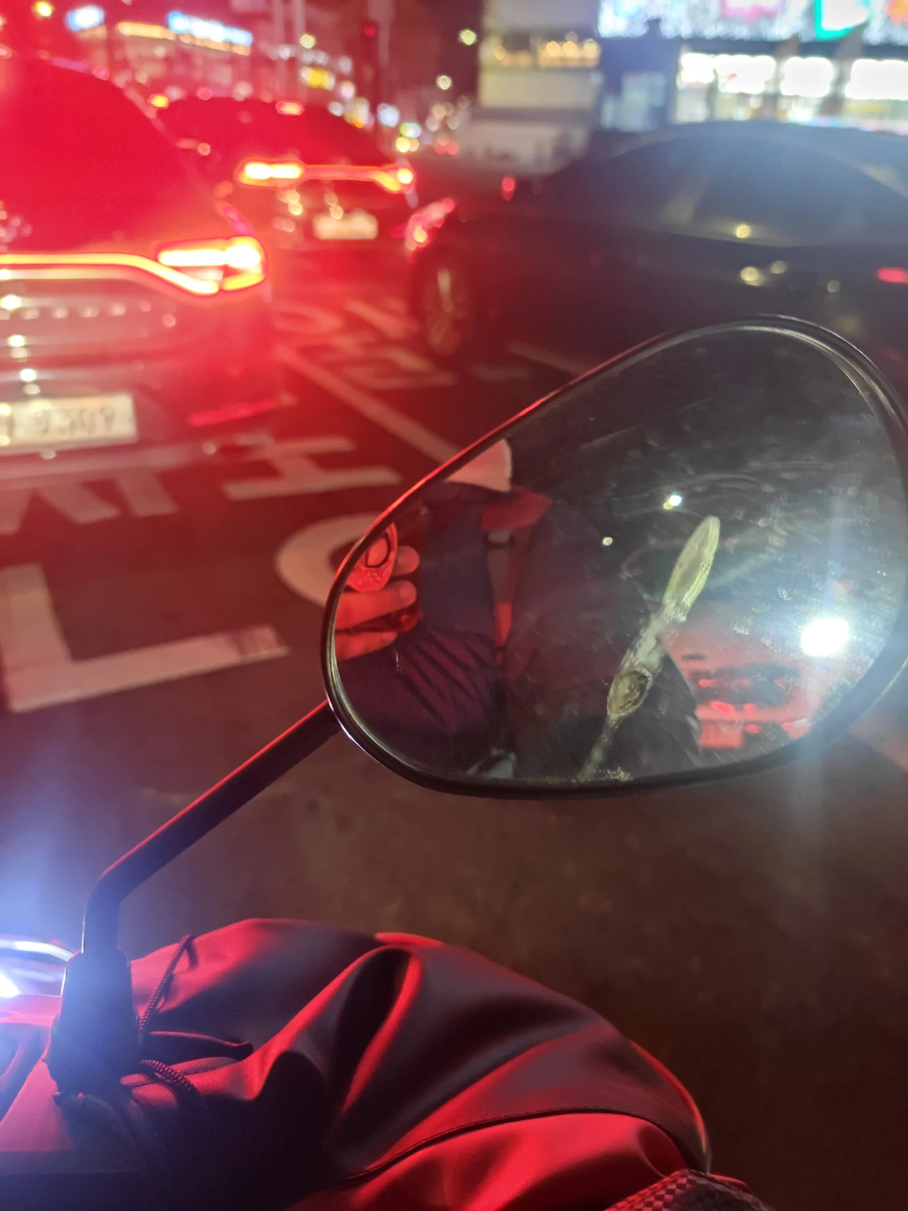 결국 오른쪽 사이드 미러 위 새똥의 흔적은 헬스장에 운동을 마치고, 3일이 지나서 지우게 되었다. 물티슈가 없었기에 지우고 싶어도 지울 수 없었고, 결국 방치되었다. 하지만 날이 갈수록 눈에 거슬리는 건 당연한 이야기. 3일째에 돌입한 순간, 고뇌 끝에 침을 묻혀 장갑으로 문대서 지웠다.(물티슈는 결국 가져오지 않았다.) 그리고는 찝찝한 손가락을 몸에서 강제 격리시키며 집으로 귀가했다.집에 가자마자 손을 빡빡 씻어냈다.