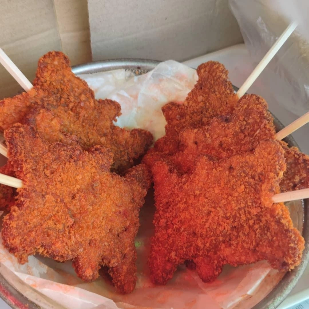 피카츄 돈가스는 피카츄를 닮은 모양의 튀김요리인데 이름은 돈가스지만 아이러니하게도 실체는 낮은 등급의 분쇄닭이다. 학창시절에 이녀석은 비둘기고기라는 소문이 있었는데, 사실은 아니었다. 내용이 어떻든 사실 맛만 좋으면 전혀 문제가 없었다. 피카츄 돈가스 전용양념에 머스터드를 조화해서 먹던 그맛은 나이가 들고 다시 이 음식을 찾았을 때는 두번다시 느끼지 못했다.