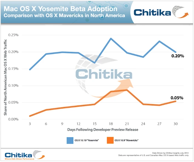 조사기관 Chitika에 따르면, "‘Mavericks(OS X 10.9)’때 베타 프로그램을 시작하여 ‘Yosemite(OS X 10.10)’로 넘어가면서 참여율 4배나 높아졌다"고 한다. 그만큼 개발자로 국한하여 제공하는 것보다 일반 사용자의 참여 횟수가 많아 피드백 성과가 좋았을 것이라 판단된다. 이때, 드는 또 하나의 생각은 “베타 버전이라 오류가 많을텐데 괜찮을까?” 라는 질문에 애플은 이렇게 답하고 있다.