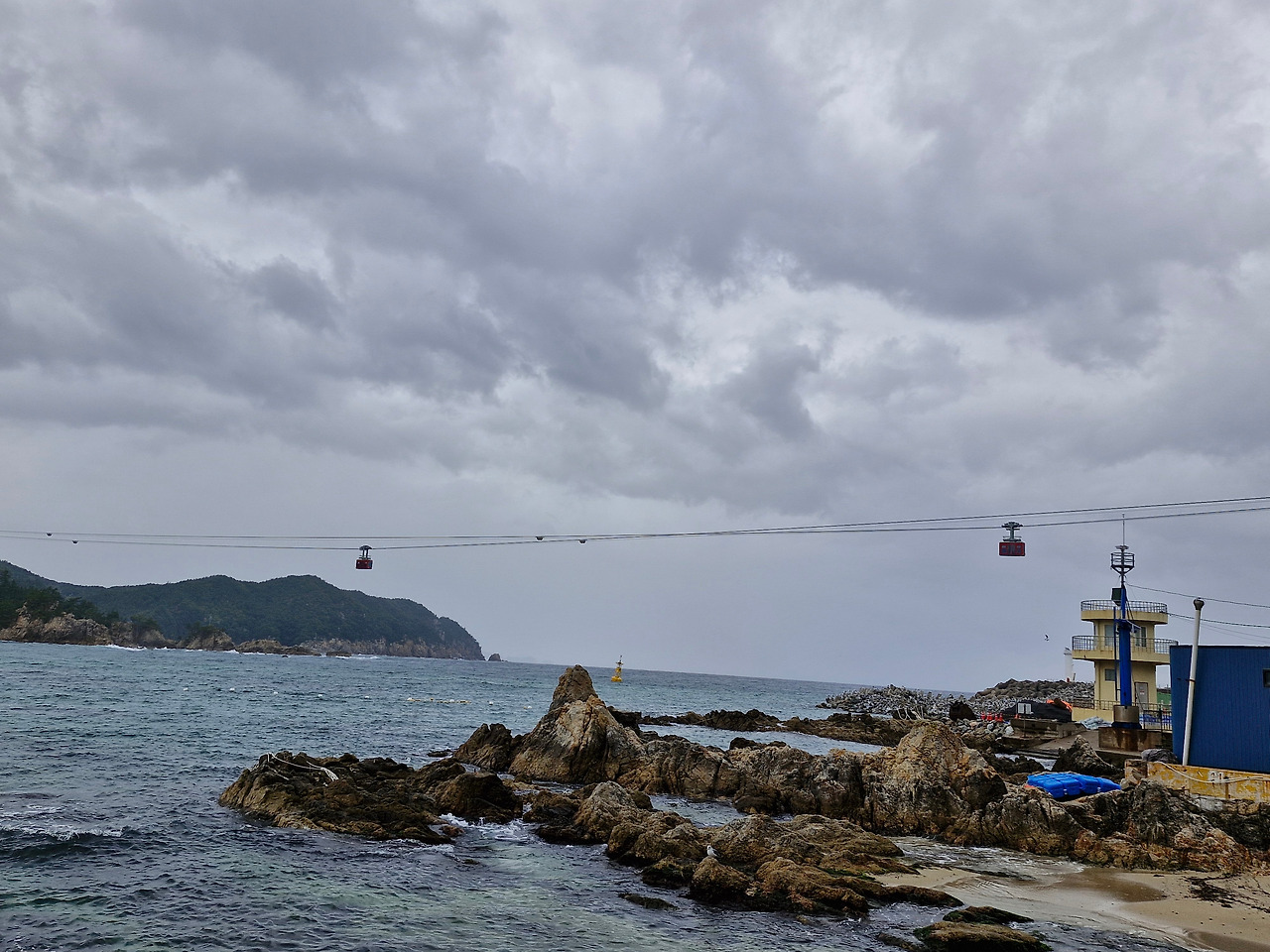 비가 잠깐 그쳐서 차에서 내려 바닷가 산책을 했다.