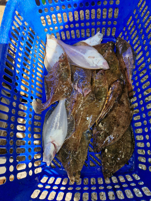 기다리다가 촉으로 줄을 감아올리면 가자미가 올려졌다.