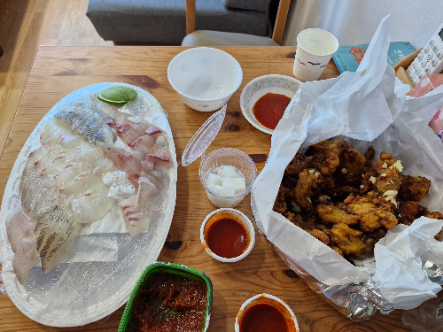 사장님이 갈치회를 서비스로 몇 점 넣어주셨는데 진짜 맛있었다.