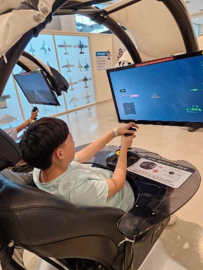 아들이 가장 많은 시간을 보낸 곳은 항공기를 시뮬레이션으로 운전해 보는 체험이었다.